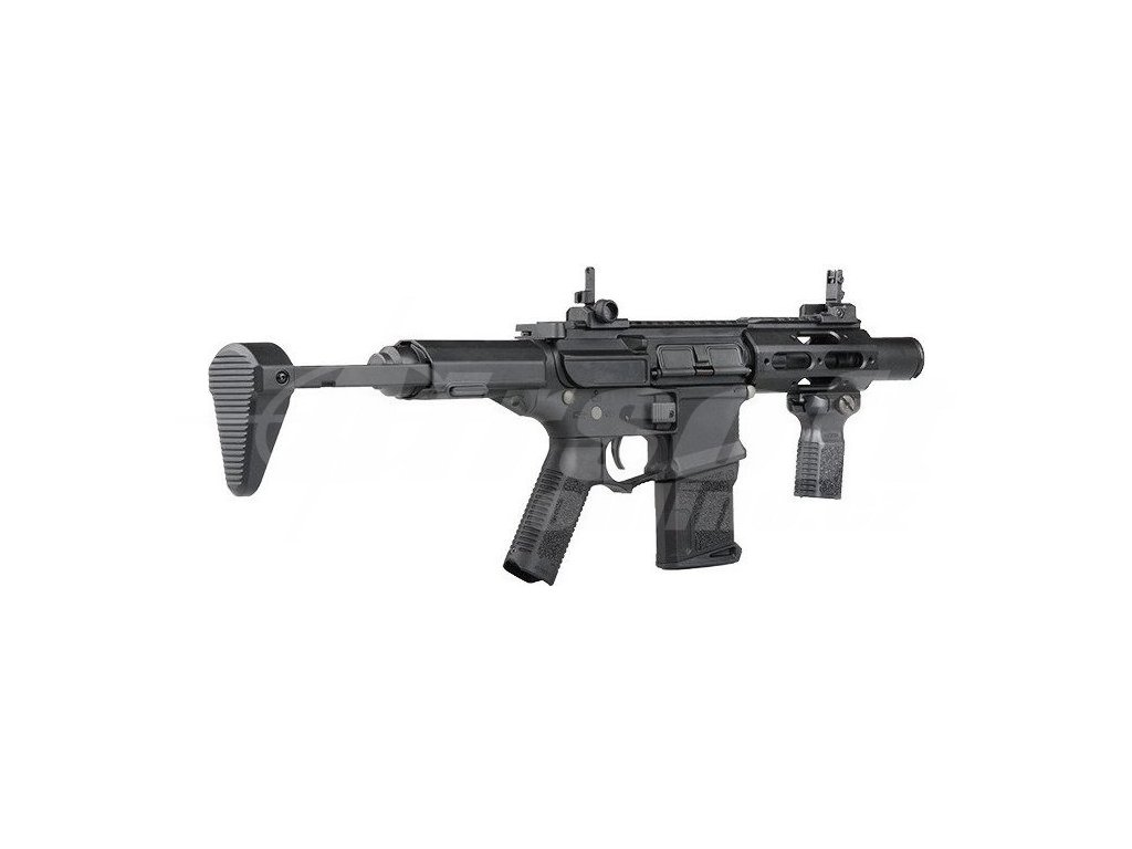 Na první pohled zaujme svou velikostí – s délkou 495–605 mm a hmotností cca 2140 g nabízí vynikající ovladatelnost. Tělo, pažba i mířidla jsou vyrobeny z vysokopevnostního polymeru, který vypadá téměř jako kov. Kovová vnější hlaveň a CNC předpažbí, stejně jako kovový tlumič plamene se závitem M14x1, dodávají zbrani na realističnosti a odolnosti. Výsuvná pažba je dvoupolohová a skýtá prostor pro malý Li-Po akumulátor. RIS lišta na horní části zbraně umožňuje upevnění mířidel nebo optiky, zatímco spodní RIS na konci předpažbí je připraven pro přiloženou taktickou rukojeť.