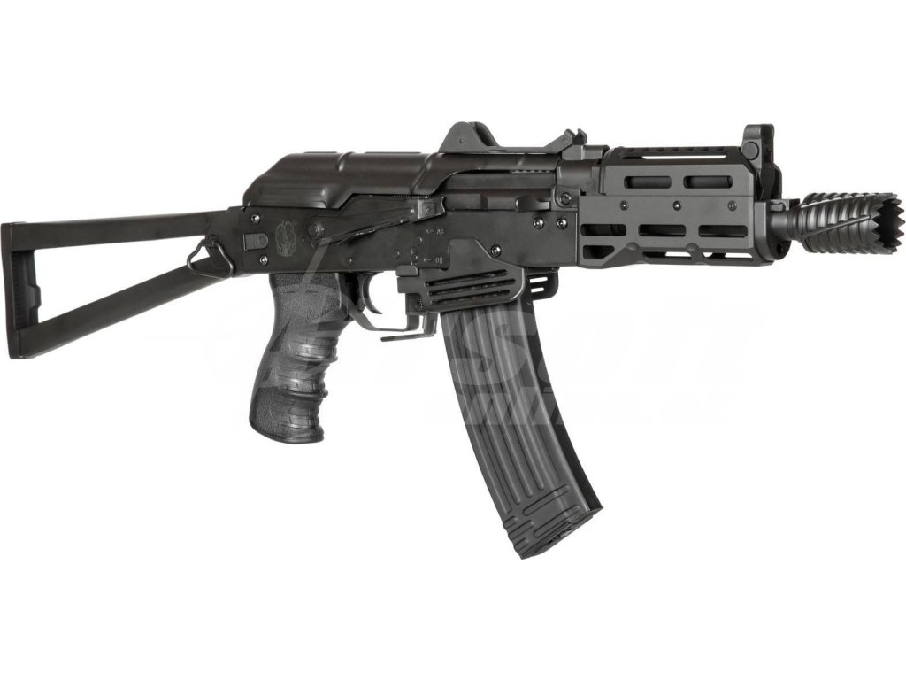Airsoftová zbraň ASK211 od APS je moderní replikou ruské kompaktní útočné pušky, která nadchne každého, kdo hledá spolehlivost, ergonomii a realistické zpracování v jednom. Díky své konstrukci z kovu a odolného plastu, kompaktní délce 460–695 mm, hmotnosti 2,83 kg a vysoké úsťové rychlosti 125 m/s, se jedná o ideální zbraň pro pohyb v městském prostředí, CQB scénáře nebo pro rychlou akci v terénu. Předpažbí s montážním systémem M-LOK zajišťuje možnost snadné instalace příslušenství, zatímco tlumič výšlehu dodává zbrani agresivní vzhled i efekt při střelbě.