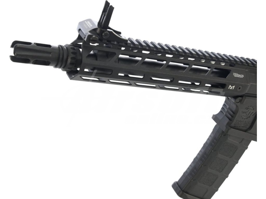 Základem repliky je lehký a extrémně odolný polymer, který je vyztužený skelnými vlákny. Kovové jsou důležité části jako vnější hlaveň, montáže a vnitřní komponenty. Zbraň váží pouhých 2,55 kg, což z ní dělá skvělého společníka pro delší nasazení. Kompaktní hlaveň délky 250 mm ukrytá v moderním M-LOK předpažbí přispívá k výborné ovladatelnosti při CQB scénářích i v terénu.
