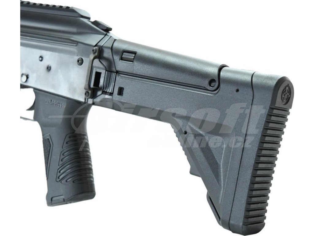 Zbraň váží 3,58 kg a její délku lze upravit v rozmezí 630–885 mm díky teleskopické a sklopné pažbě typu AR, kterou oceníte v různých taktických situacích. Vnitřní hlaveň o délce 375 mm a úsťová rychlost 130 m/s zajišťují vysokou přesnost i na delší vzdálenosti. Unikátní konstrukce zásobníku s imitací nábojů a okénkem nejen dobře vypadá, ale i skvěle drží v šachtě.