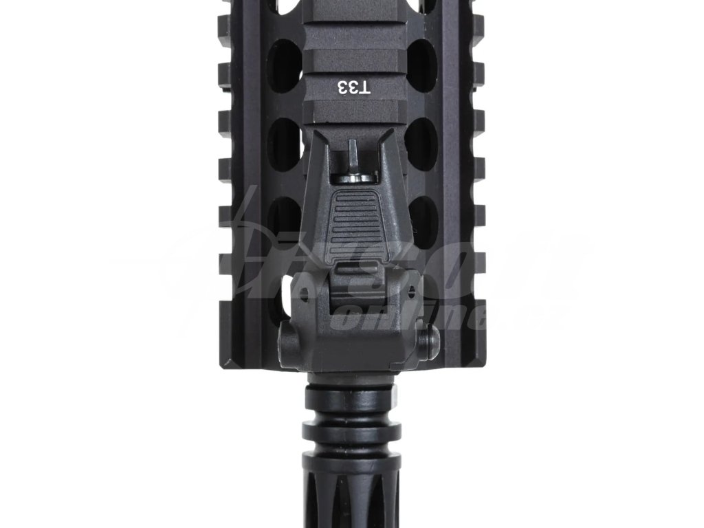 Tělo repliky je vyrobeno z kvalitního nylonového polymeru vyztuženého vlákny, což zajišťuje nejen nízkou hmotnost (pouze 2405 g), ale i vysokou odolnost. Klíčové části jako hlaveň, předpažbí RIS, tlumič plamene a ovládací prvky jsou z kovu, což přidává na realistickém vzhledu i funkčnosti. RIS předpažbí umožňuje připojení široké škály příslušenství, zatímco standardní 14mm CCW závit nabízí možnost montáže tlumiče.