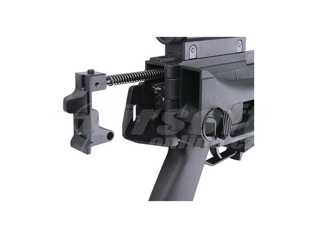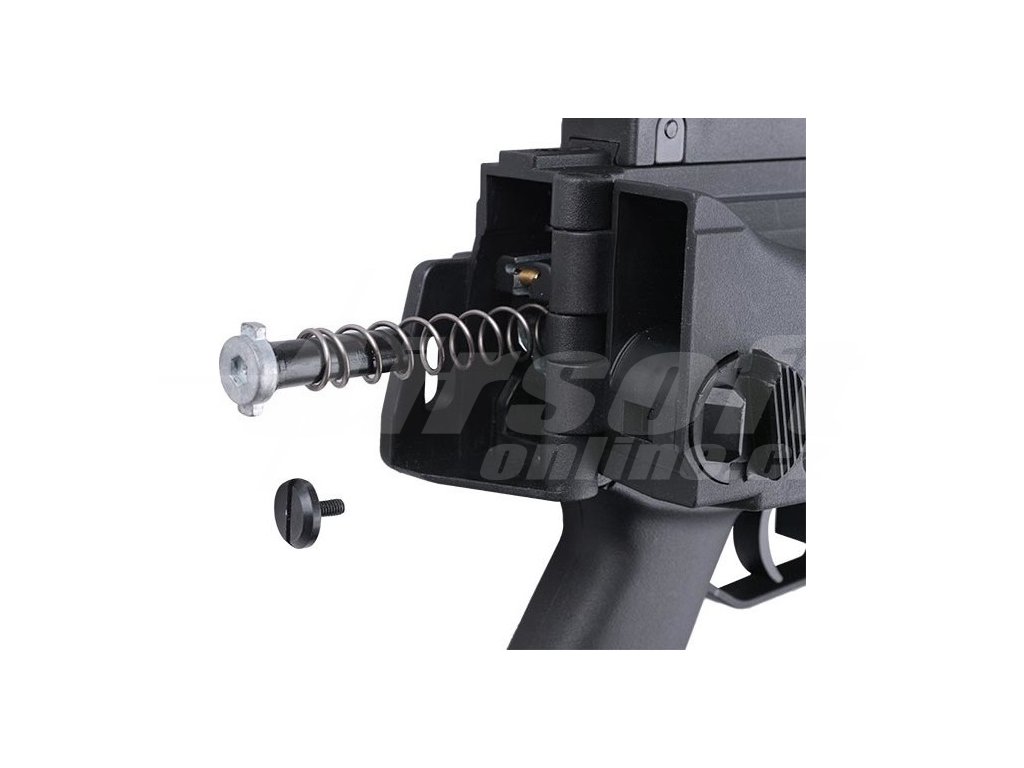 Replika byla vyrobena z pevného polymeru s kovovými a ocelovými díly na nejvíce zatěžovaných místech, jako jsou čepy nebo závěsné body. Horní část zbraně je osazena 22mm RIS lištou, ideální pro kolimátory či jiné optické systémy. Sklopná boční pažba a ergonomická stavba zbraně umožňují efektivní ovládání v omezeném prostoru. Vnitřní 229mm hlaveň s průměrem 6,08 mm a regulovatelný plastový hop-up zajišťují stabilní výkon a dobrý dostřel.