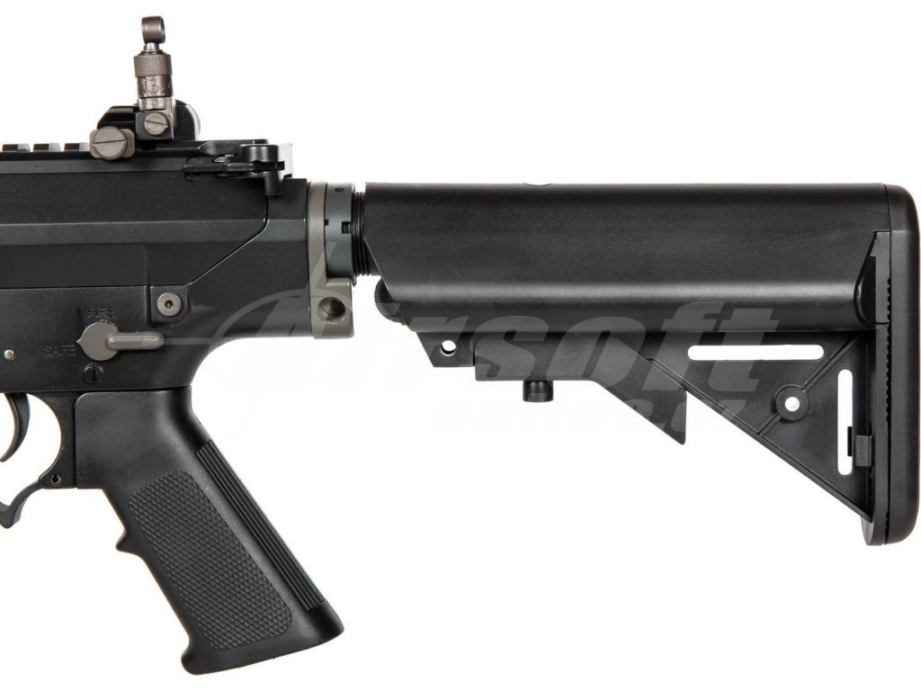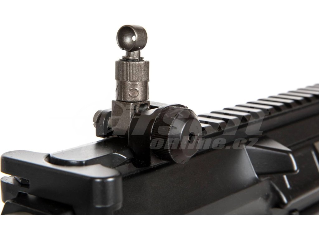 Zbraň je vyrobena převážně z odolné hliníkové slitiny, včetně těla a hlavně. Pistolová rukojeť a pažba jsou z kvalitního polymeru. Tato teleskopická 5polohová LMT pažba umožňuje pohodlné nastavení délky a ukrývá baterii. RIS kolejnice po celé délce zbraně a bočních stran umožňují montáž optiky, svítilen nebo taktických doplňků. Mimořádně praktický je rychloupínací tlumič a funkční oboustranné ovladače, které potěší i leváky.