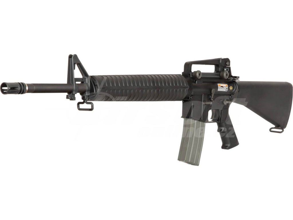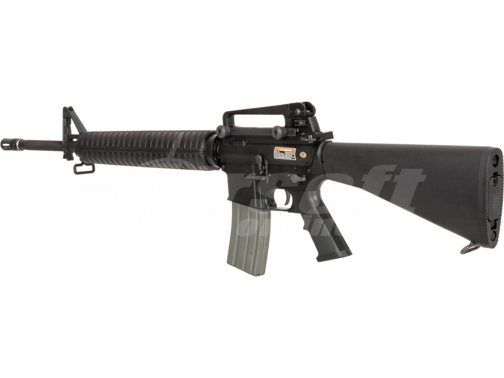 Hmotnost zbraně je 2,89 kg a její celková délka činí 1050 mm, což odpovídá reálným rozměrům pušky M16. Pažbení kombinuje kov a ABS plast, což přináší odolnost i pohodlné držení. Zbraň má dva režimy střelby – jednotlivé rány a dávku. Baterie je umístěna v pažbě a napájení je doporučeno pomocí Li-pol 7,4V nebo klasických NiMH/NiCd akumulátorů.