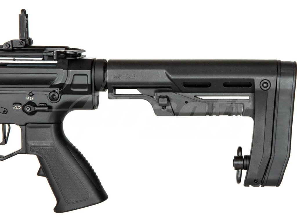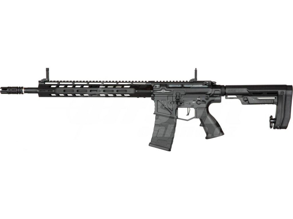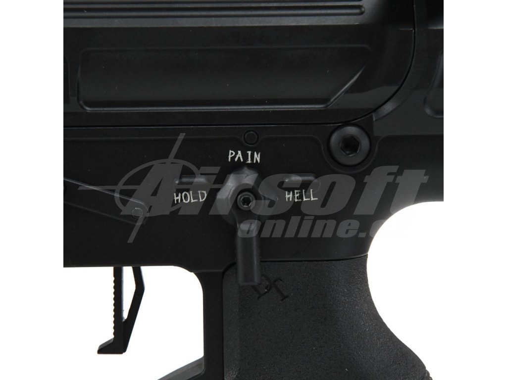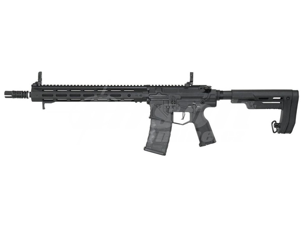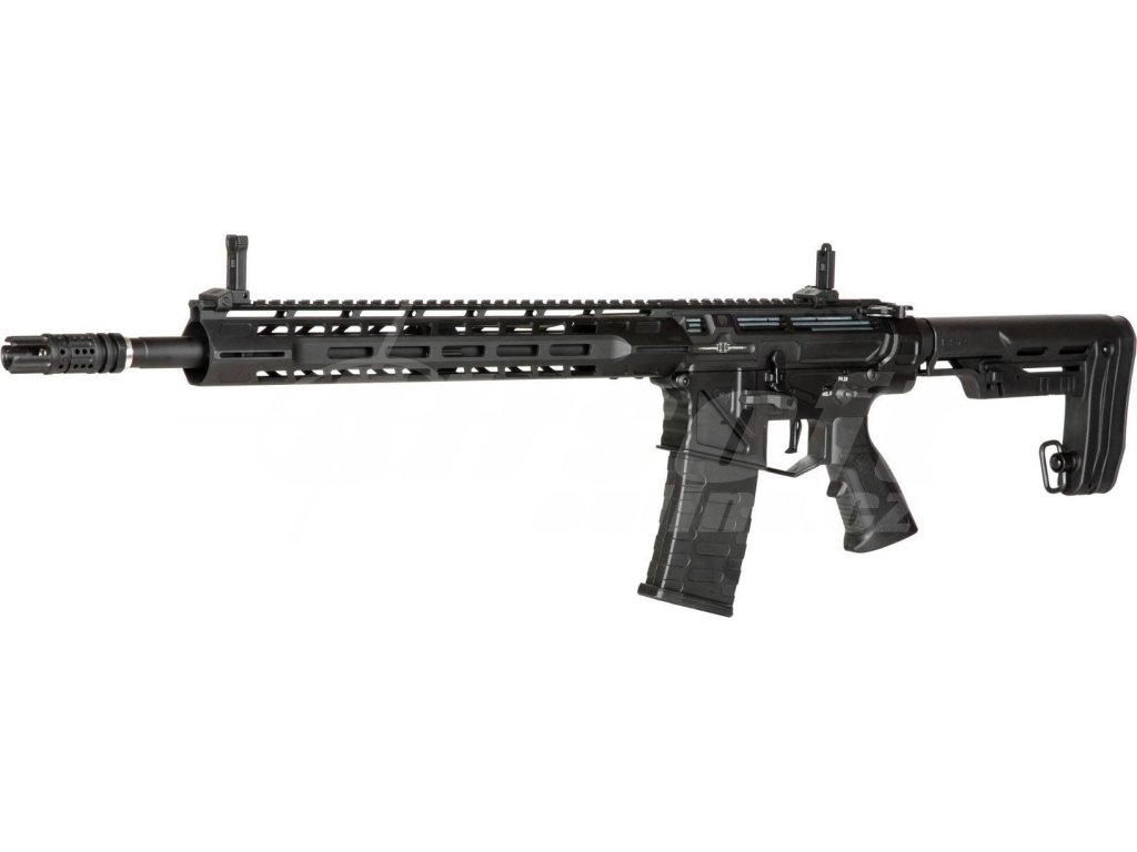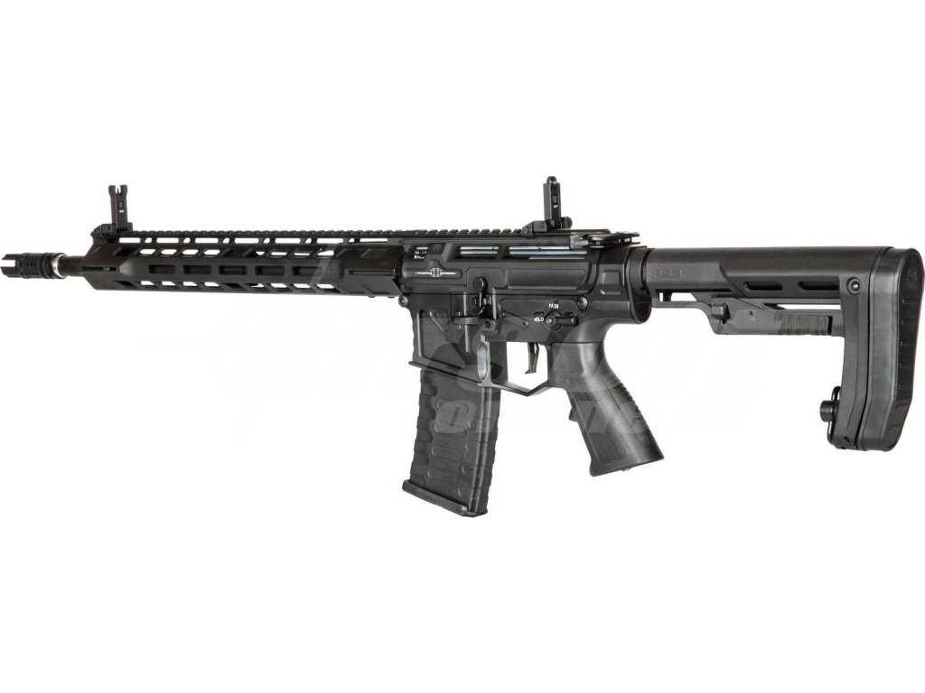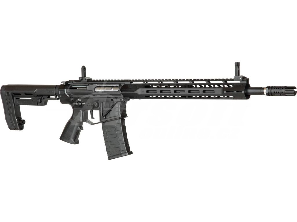Tělo této zbraně je celokovové a doplněné o ergonomickou pažbu s možností nastavení délky. Předpažbí typu M-LOK umožňuje připojení dalších taktických doplňků podle potřeby. Na ústí 400 mm dlouhé bronzové hlavně najdeme agresivně tvarovaný tlumič výšlehu. Součástí konstrukce je i funkční blowback, který přidává na realističnosti.