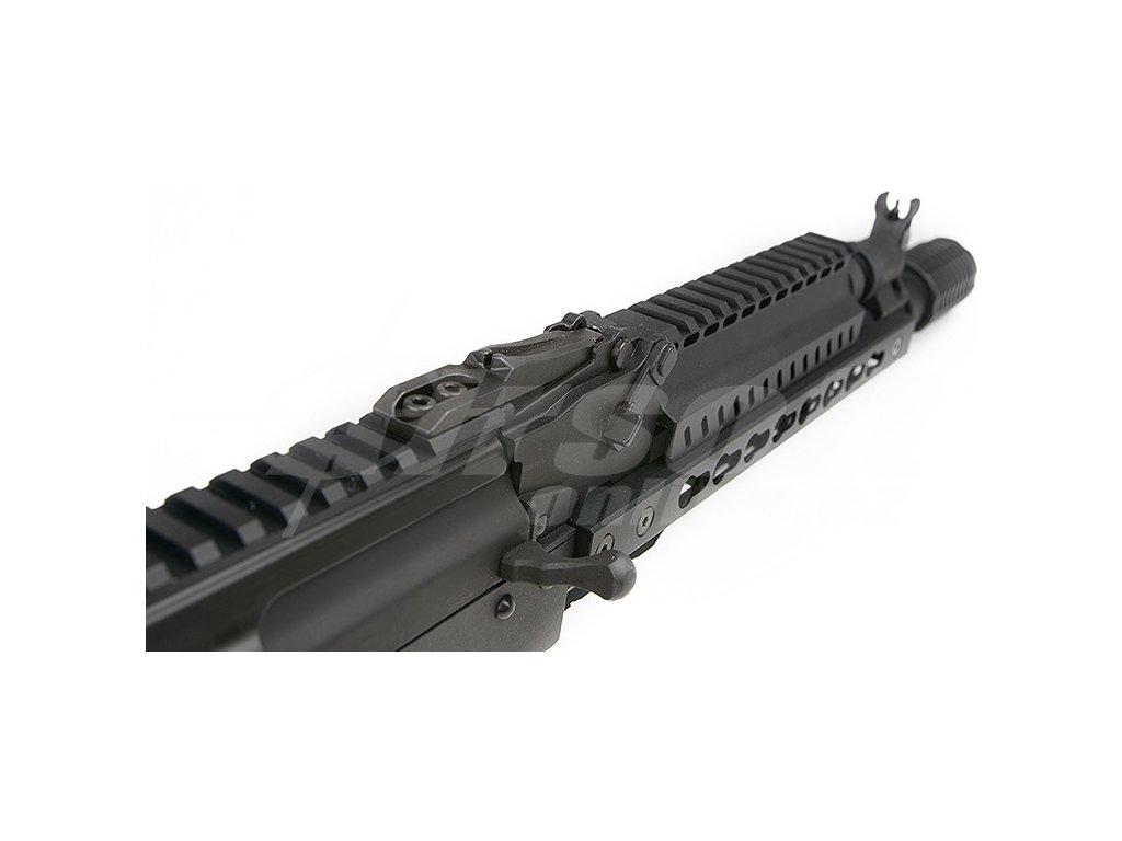 Tělo zbraně je vyrobeno z pevné kovové slitiny, stejně jako předpažbí ve stylu KeyMod, které umožňuje rychlou a snadnou instalaci montážních lišt dle potřeb uživatele. Díky RIS liště na závěru lze pohodlně osadit kolimátor nebo optiku. Délka zbraně je 810–900 mm, hmotnost přibližně 3160 g. Pažba je výsuvná, šesti-polohová, s gumovou patkou a úložným prostorem. Kompenzátor se sound efektem zvyšuje nejen realismus střelby, ale i její zvukový dopad na soupeře.