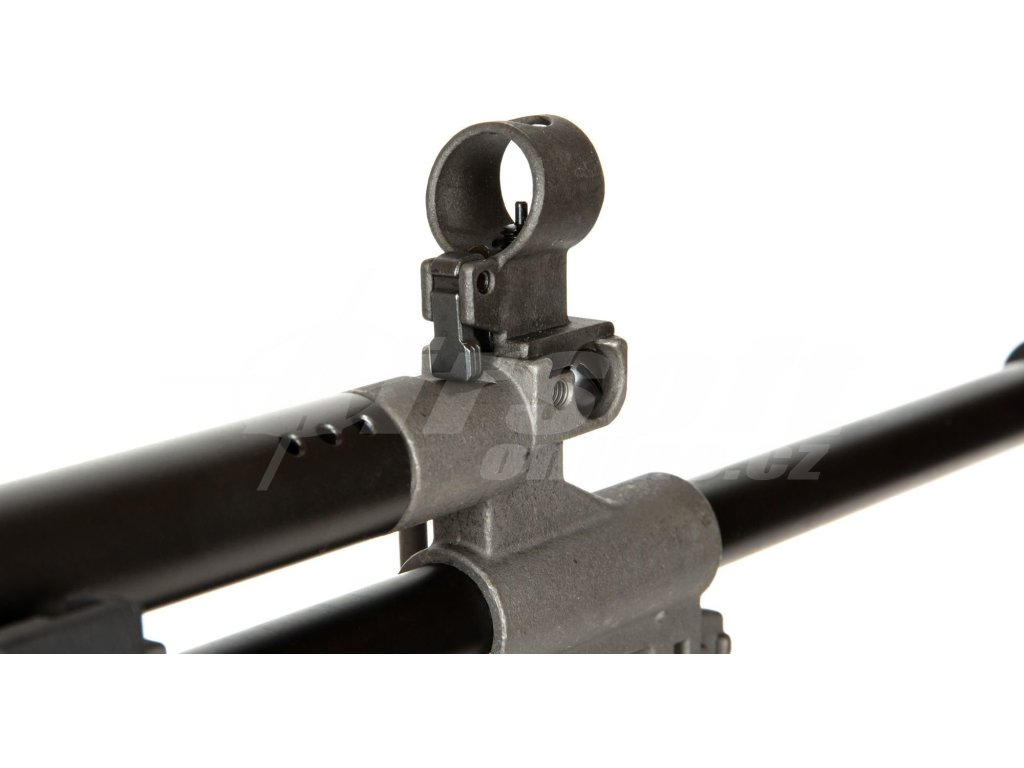 Tělo zbraně je celokovové, přičemž předpažbí a části pažby jsou z odolného ABS plastu, což dodává zbrani autentický pocit při manipulaci. Sklopná pažba umožňuje snazší přepravu a flexibilní použití i v omezeném prostoru. Celková délka se pohybuje od 755 do 995 mm, což umožňuje pohodlné držení pro různé typy hráčů. Vnitřní bronzová hlaveň o délce 510 mm poskytuje skvělou přesnost a dostřel až 54 metrů.