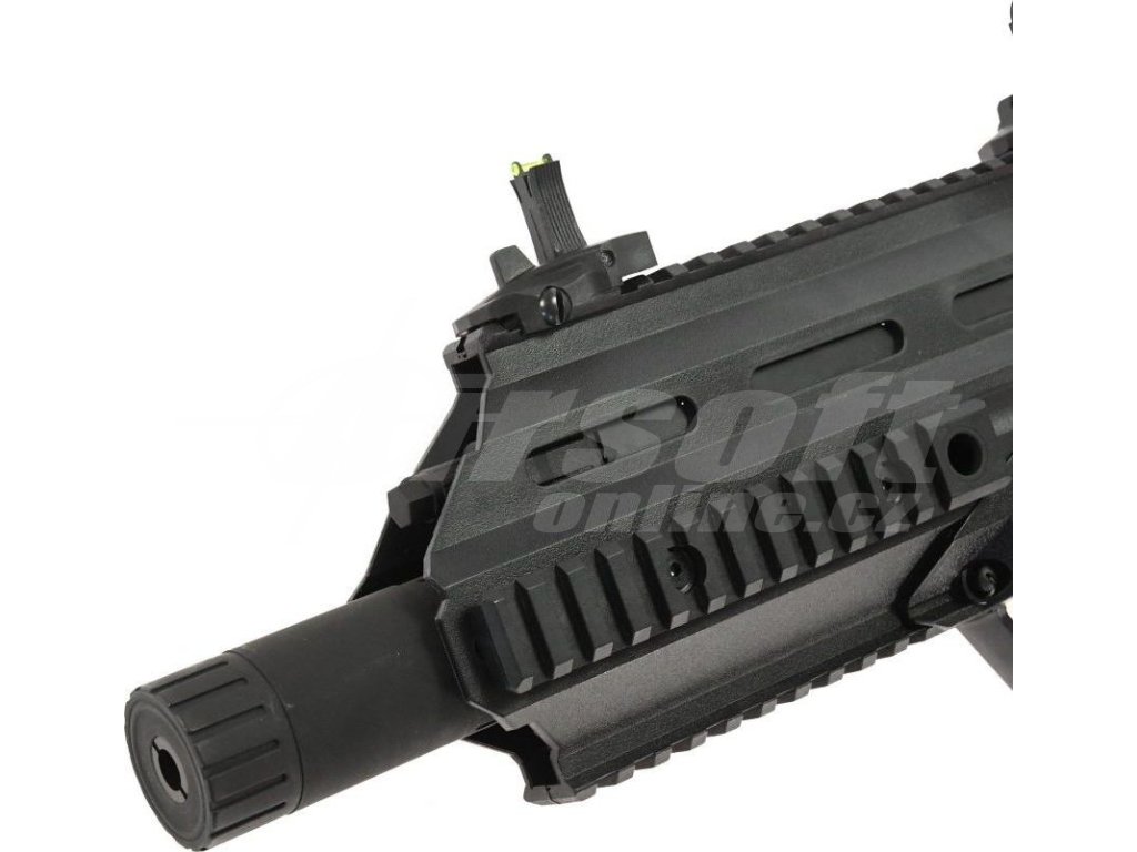 - Standardní vybavení: 75mm tlumič Guardian a sklápěcí záložní mířidla Athena.