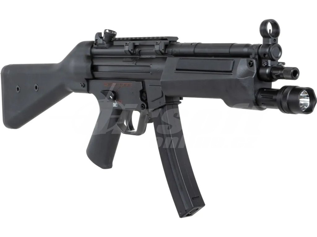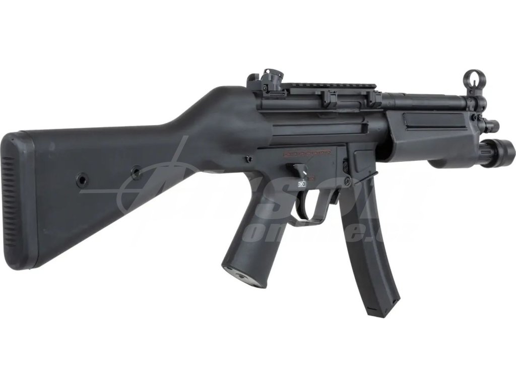 Model vychází ze slavného Heckler & Koch MP5, který se již od 60. let používá ve výzbroji bezpečnostních složek po celém světě. Tato verze s pevnou pažbou, klasickým tělem a jednoduchou manipulací je typická pro policejní jednotky, vojenský personál a speciální zásahové týmy. Díky spolehlivosti, kompaktní konstrukci a přesnosti si MP5 získal renomé jedné z nejúspěšnějších zbraní své kategorie.