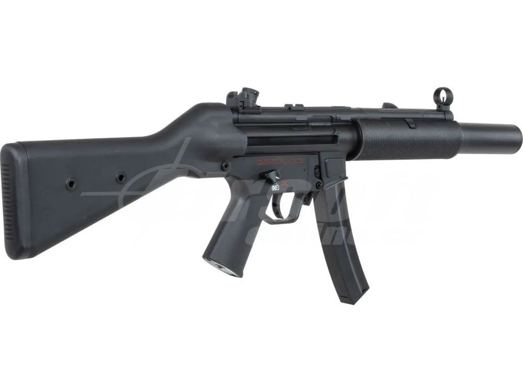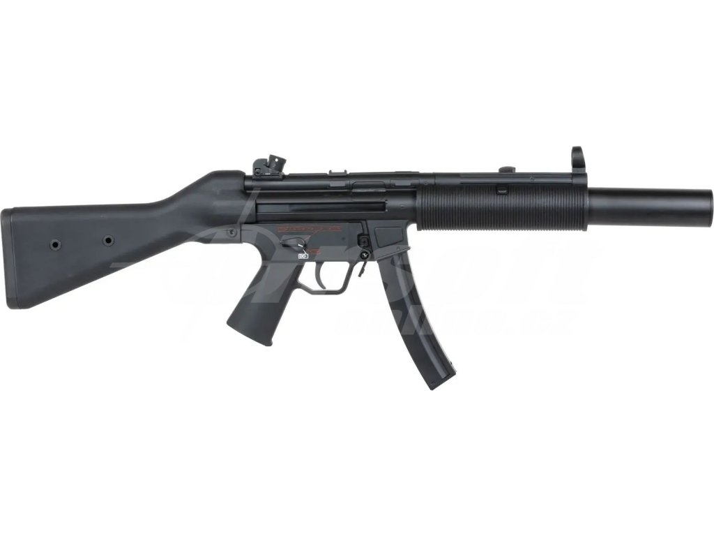 Tato replika vychází z legendárního německého samopalu Heckler & Koch MP5, který se stal ikonou mezi zbraněmi používanými armádami a bezpečnostními složkami po celém světě. Konkrétně se jedná o variantu s pevnou pažbou, kterou používaly policejní jednotky a vojenské síly především v městském boji. MP5 si získal oblibu díky své přesnosti, nízkému zpětnému rázu a kompaktní konstrukci.