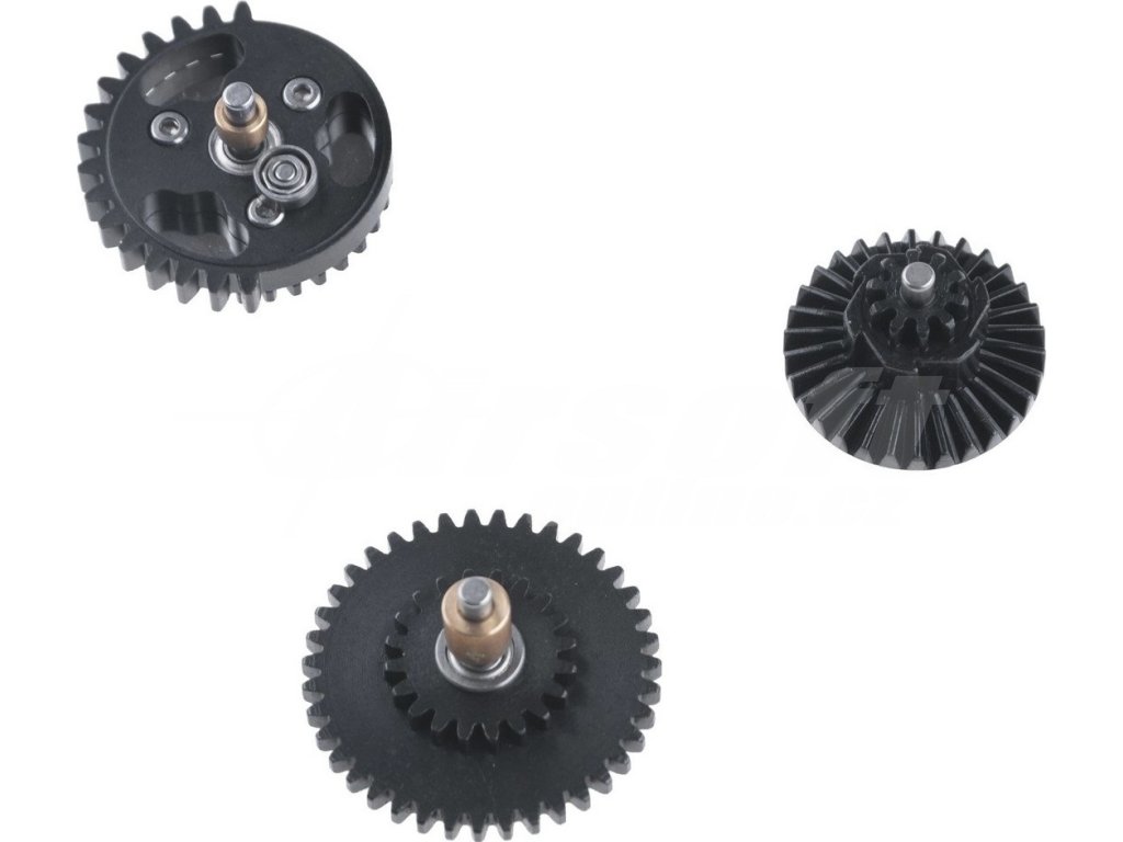 Sada ozubených kol vyrobená z oceli pomocí přesných CNC strojů. Ideální pro upgrade a ladění airsoftových replik.