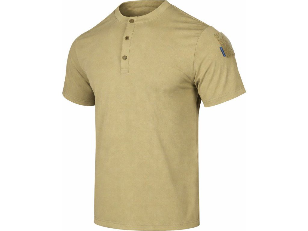 Materiálová kombinace 75% nylonu a 25% spandexu poskytuje pružnost, odolnost a příjemný pocit na pokožce. Strategicky umístěné síťované panely zajišťují optimální ventilaci a regulaci tělesné teploty i při intenzivní fyzické zátěži. Ergonomický střih s 4D elasticitou se dokonale přizpůsobí vašemu pohybu bez ztráty tvaru. Praktický límeček typu Henley s knoflíkovým výstřihem poskytuje lepší ventilaci, zatímco suchý zip na levém rukávu umožňuje připevnění taktických nášivek pro týmovou identifikaci na airsoftovém poli.