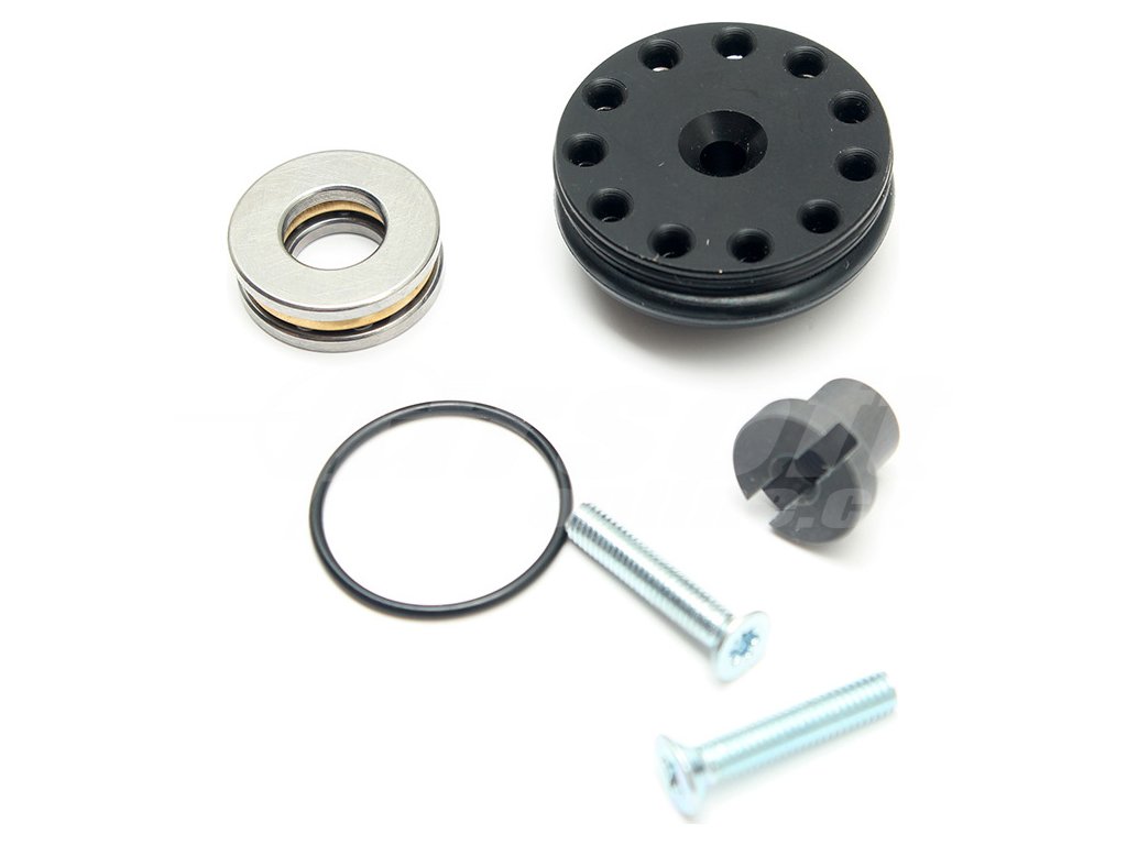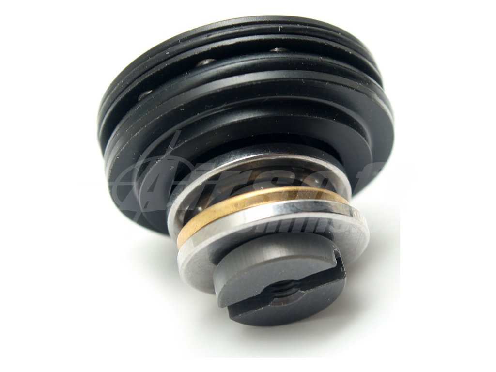 Hlava pístu je opatřena dvěma o-kroužky - menším vodícím a větším těsnícím. Ten je při pohybu pístu vpřed roztahován tlakem vzduchu díky jedenácti otvorům s radiálním vyústěním pro maximální efektivitu. Hmotnost samotné hlavy včetně o-kroužků je 3,45g, kompletní hlava pístu včetně ložiska s přírubou a šroubem pak 8.80g. Plastovou hlavu doporučujeme používat do pružin M140.