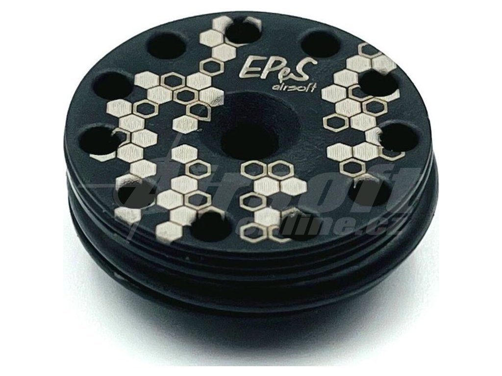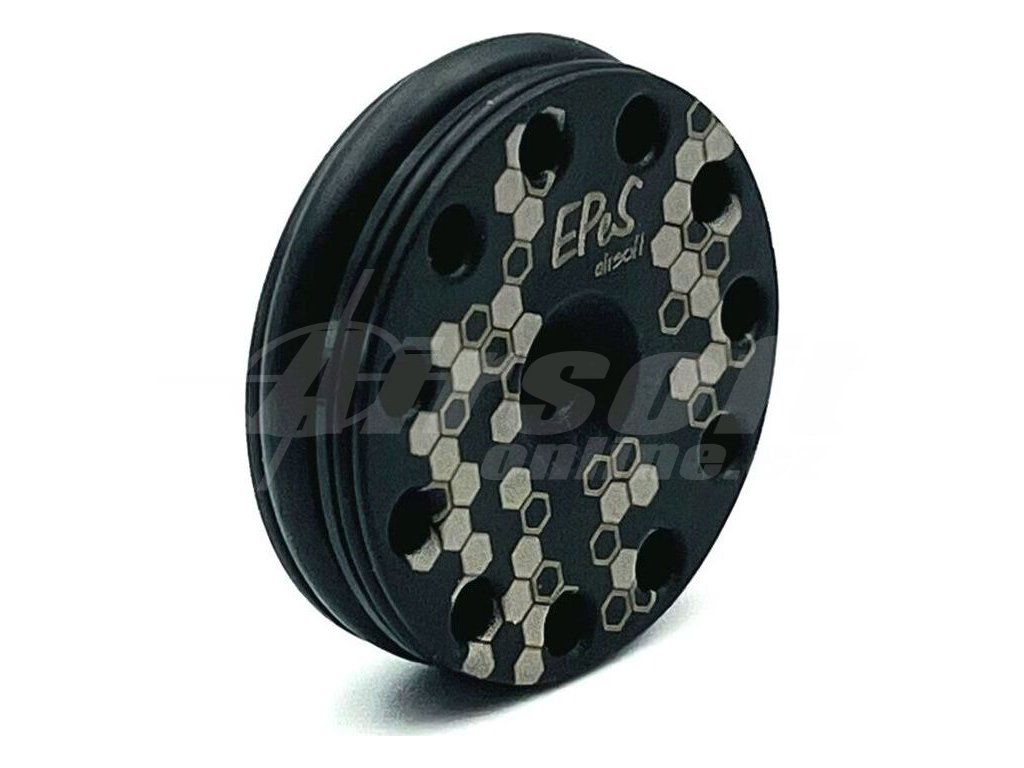 Precizní CNC hlava pístu od českého výrobce EPeS vyrobená z kvalitního konstrukčního plastu POM-C. Speciální konstrukce se dvěma O-kroužky (vodicím a těsnicím) zajišťuje dokonalé utěsnění a vyšší výkon vaší AEG zbraně. 11 radiálních otvorů umožňuje optimální roztažení těsnicího kroužku a zvyšuje efektivitu střelby. Hlava pístu má velmi nízkou hmotnost (pouze 8,80 g komplet s ložiskem), díky čemuž je ideální pro pružiny až do M140. Vyrobeno v České republice.