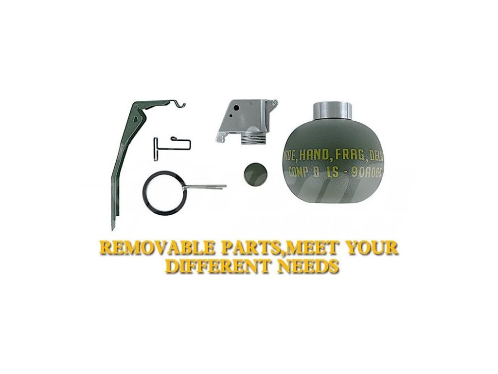 - Plastová replika granátu s kovovými díly