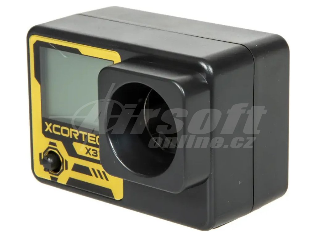 První kapesní Airsoftový chronograf na trhu od Xcortech. Společnost má bohaté zkušenosti na trhu chronometrů. Velikost zařízení je srovnatelná s webkamerou Go Pro a velmi snadno se ovládá a je kompatibilní s různými hmotnostmi a rážemi střeliva. Má dvě možnosti napájení, jedna je AA baterie a druhá je připojení Micro USB kabelu k libovolnému USB portu.