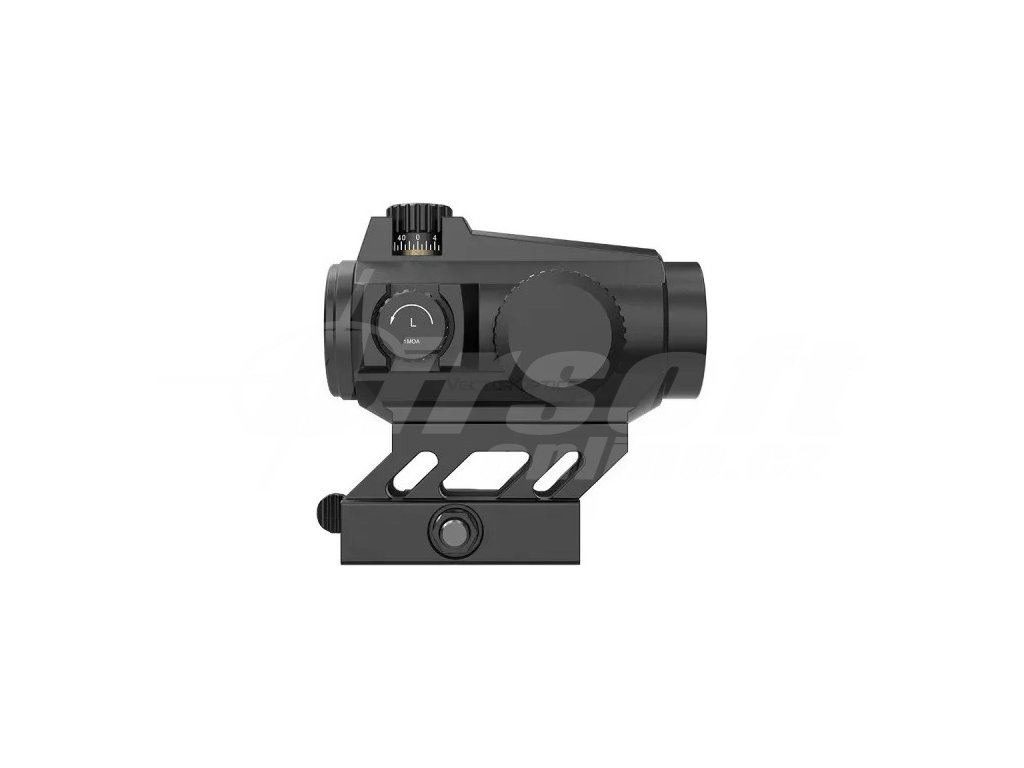 Kolimátor je dodáván s vysokou Cantilever montáží typu Lower 1/3 Co-Witness (výška 38 mm) a nízkou RIS montáží pro maximální flexibilitu instalace na airsoftové zbraně. Hliníkové tělo ze slitiny 6061-T6 s matnou povrchovou úpravou zaručuje vysokou odolnost při intenzivním používání na airsoft akcích. Boční schránka na baterii umožňuje výměnu bez nutnosti opětovného nastřelování. Kolimátor má paralaxu pod 2 MOA, což zajišťuje přesný zásah bez ohledu na polohu oka. Ideální pro taktickou výstroj a rychlé zaměřování na krátkou až střední vzdálenost.