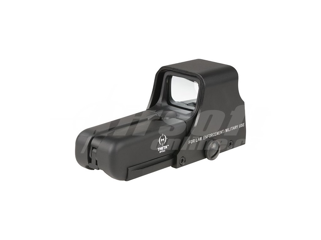 Kovový airsoftový kolimátor Theta Optics TO552 je napájený dvěma AA bateriemi. Je možné volit mezi zeleným nebo červeným záměrným bodem - kříž v kruhu. Intenzitu podsvícení lze měnit v 8 krocích a umožňuje tak komfortní použití při všech světelných podmínkách - ve dne i v noci. Polohu záměrného kříže lze regulovat jak vertikálně, tak i horizontálně. Tělo kolimátoru je chráněno robustním kovovým rámem. Ke zbrani se zaměřovač připevňuje pomocí aretačního šroubu na standardní 22mm RIS lištu.