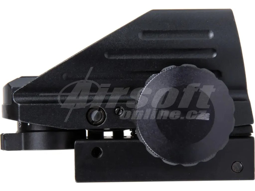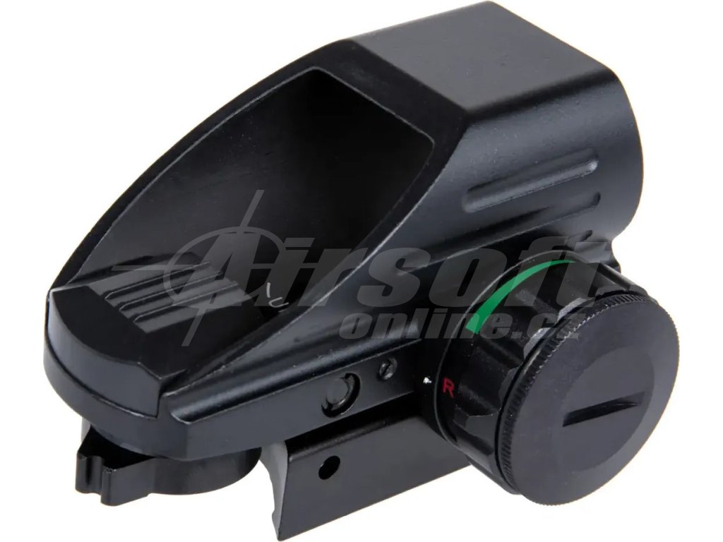 Taktický zaměřovač umožňuje rychlé zaměření cíle se zachováním plného rozhledu střelce - obě oči zůstávají při zaměřování otevřené, což poskytuje perfektní přehled o pohybu cíle. Kolimátor nabízí 4 typy záměrných křížů v zelené a červené barvě s plynulým nastavením intenzity, které můžete přizpůsobit světelným podmínkám pomocí otočné věžičky. Průhledové okénko 22×33 mm s vícevrstvou povrchovou úpravou optiky zajišťuje čistý obraz. Zorné pole 15,8 m na 100 m poskytuje výborný přehled. Kolimátor je možné seřizovat stranově i výškově s korekcí 60 MOA pomocí imbus klíče. Montáž na RIS 21 mm weaver lištu zajišťuje snadnou instalaci na vaši airsoftovou výstroj. S hmotností pouze 160 g nezatíží vaši zbraň.