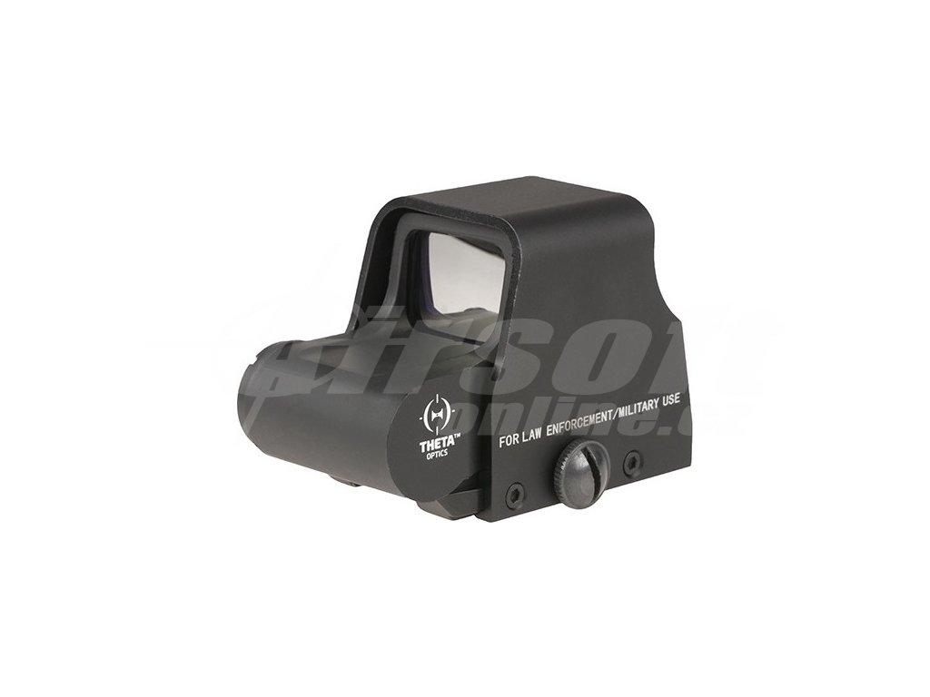 Kovový airsoftový kolimátor Theta Optics XTO je napájený CR123A baterií. Je možné volit mezi zeleným nebo červeným záměrným bodem - kříž v kruhu. Intenzitu podsvícení lze měnit v 8 krocích a umožňuje tak komfortní použití při všech světelných podmínkách - ve dne i v noci. Polohu záměrného kříže lze regulovat jak vertikálně, tak i horizontálně. Tělo kolimátoru je chráněno robustním kovovým rámem. Ke zbrani se zaměřovač připevňuje pomocí aretačního šroubu na standardní 22mm RIS lištu