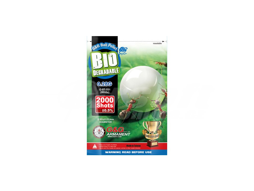 G&G – BB6mm Kuličky vyráběné firmou G&G Armament jsou velmi kvalitní BIO kuličky vyrobené na Taiwanu. V přírodě se rozloží do cca 2 let.