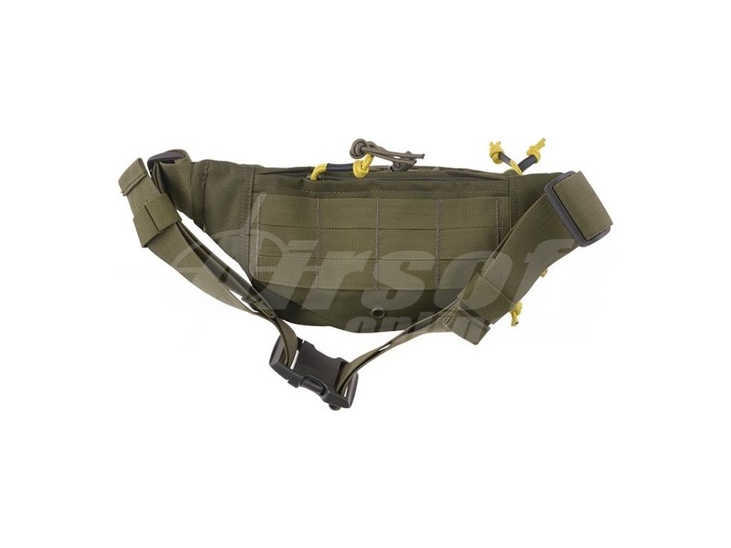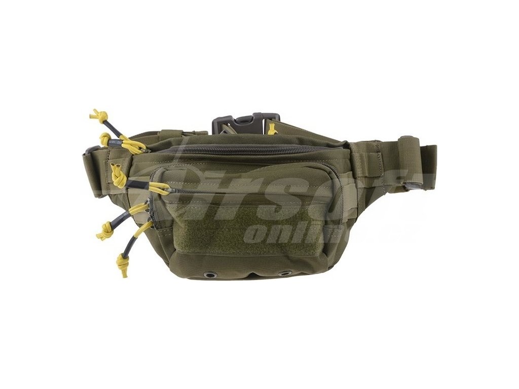 Praktický ledvinka je vyrobená z pevného a odolného nylonu a je ideální pro přenos menších věcí. Hodí se jak pro airsoftovou hru, tak horskou turistiku či pro EDC. Je velice prostorná, kromě velkého hlavního prostoru, je vybavena dalšími dvěma menšími kapsami vpředu a plochým kapsičkou na zadní straně. Dvě největší kapsy mají dvojité zipy. Horní část balení je opatřena elastickou šňůrou, kterou lze použít pro připojení dalšího zařízení, např. láhve. Zadní strana obsahuje nosný systém MOLLE / PALS.