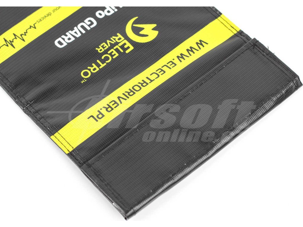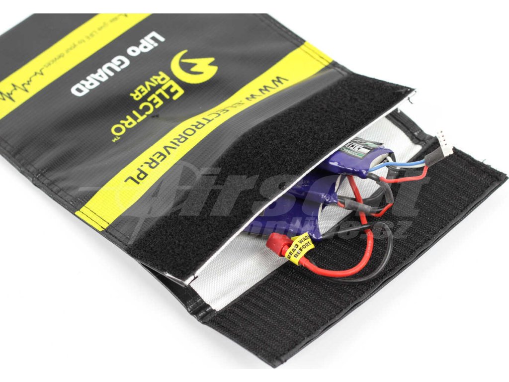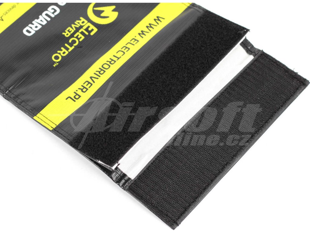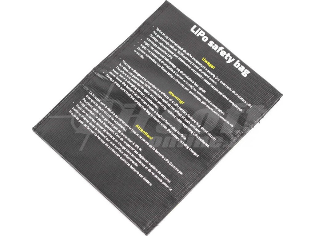 Díky svým rozměrům je sáček vhodný pro většinu běžně používaných Li-Pol článků v airsoftu, RC modelářství i dalších elektronických aplikacích. Uzavírá se pomocí suchého zipu, který zajistí pevné a rychlé uzavření. Doporučujeme jej používat při každém nabíjení a přepravě baterií – a to i u nových a zdánlivě bezproblémových článků.