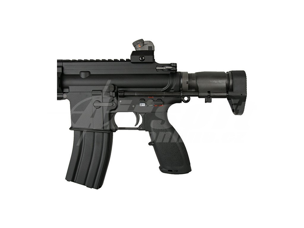 Tělo zbraně je z kovové slitiny, doplněné o výsuvnou pažbu, sklopnou mušku a RIS předpažbí pro montáž doplňků. Vnitřní komponenty jsou rovněž kovové, což přispívá k vyšší odolnosti a dlouhé životnosti. Zbraň váží přibližně 2820 g a její délka se pohybuje mezi 570 a 670 mm v závislosti na nastavení pažby. Zbraň má regulovatelný kovový Hop-Up, který zajišťuje přesnější střelbu a lepší trajektorii kuliček.