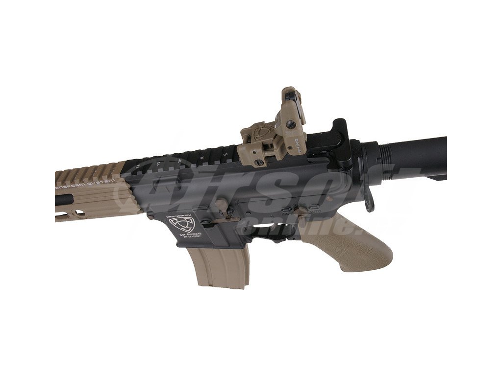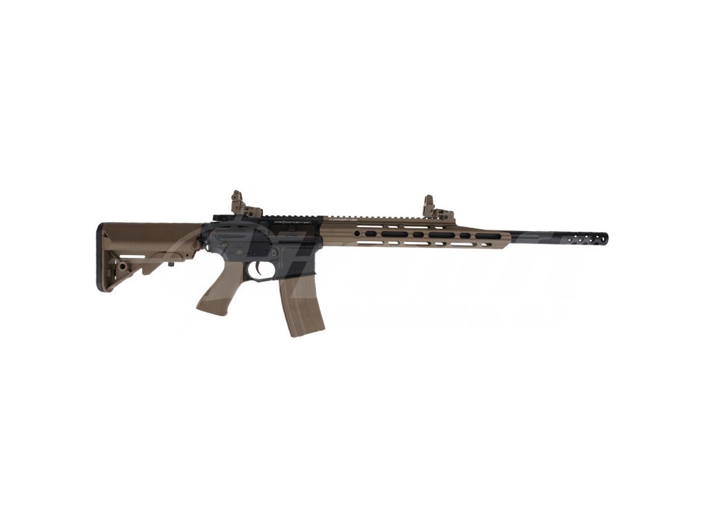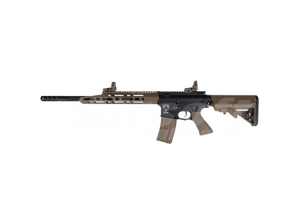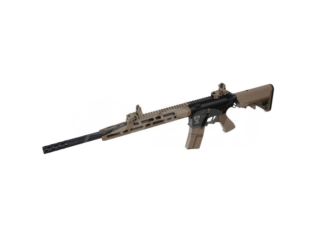 Tělo zbraně je z kvalitního hliníku s detailní rytinou „Special Purpose Rifle“ a doplněné o 13" předpažbí Guardian s kolejnicovým systémem. V kombinaci s 400mm kovovou hlavní a 105mm tlumičem vytváří perfektně vyváženou zbraň vhodnou jak pro přesnou střelbu, tak pro dynamický pohyb v terénu. Výsuvná pažba se 6 polohami s gumovou patkou umožňuje přizpůsobení každému hráči, zatímco plastová pistolová rukojeť zajišťuje pohodlný úchop.