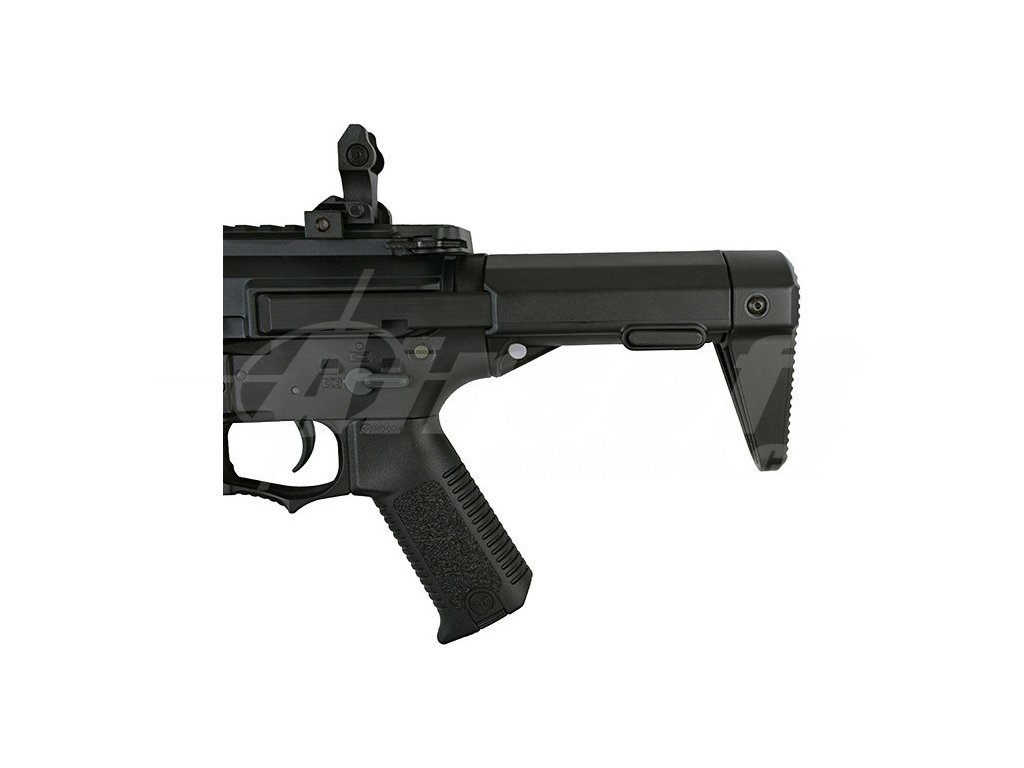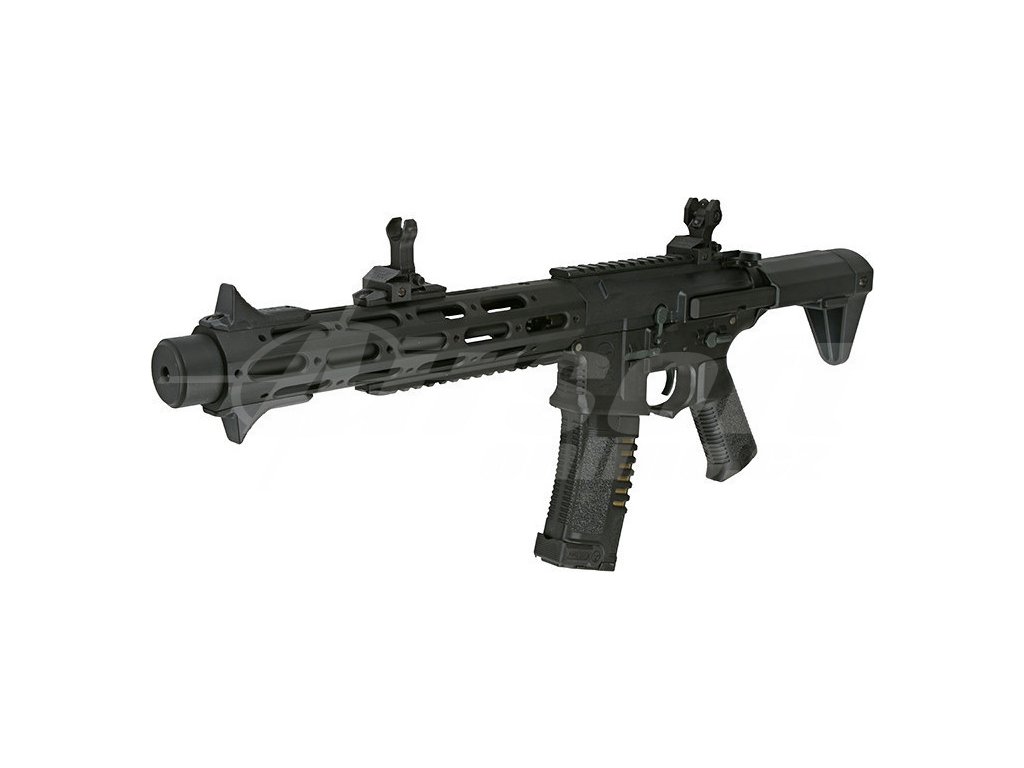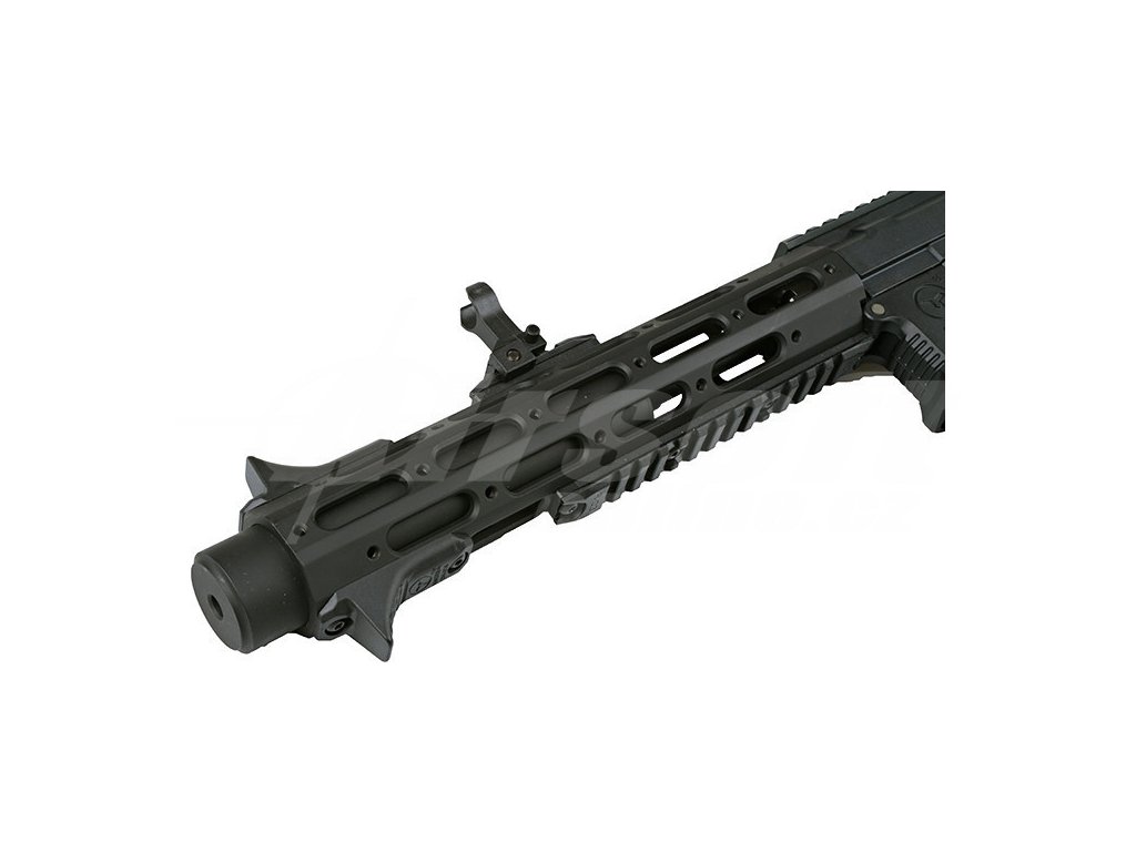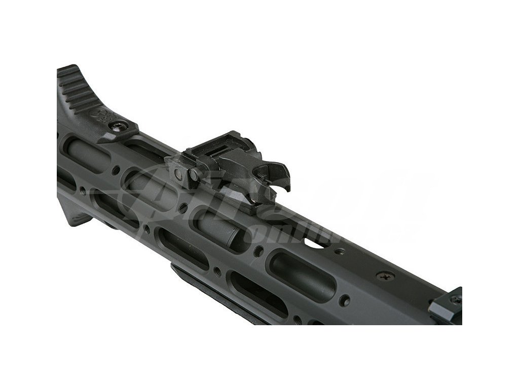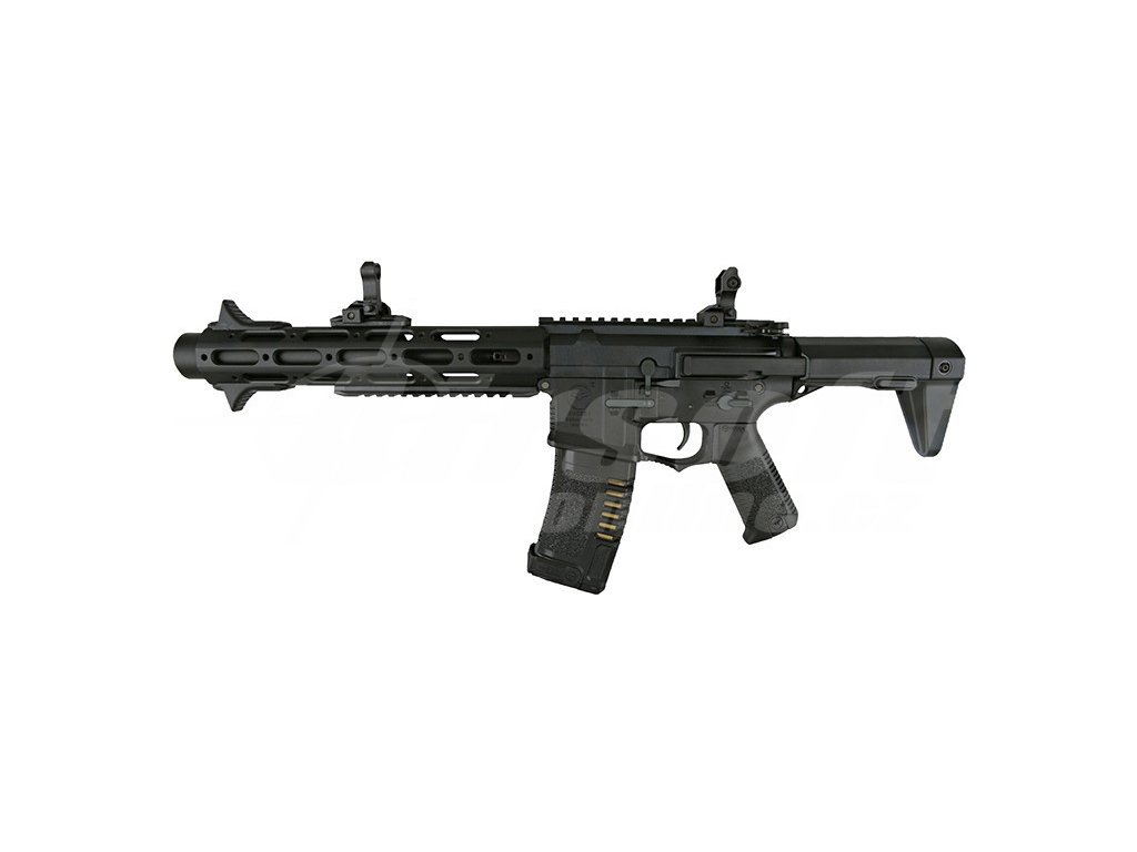 Tělo zbraně je vyrobeno z kvalitního polymeru s vysokou pevností, který je velmi odolný proti poškození, ale zároveň lehký pro snadné ovládání. Předpažbí je z CNC frézovaného hliníku, stejně jako tlumič plamene a tubus pažby. Zbraň váží pouze 2,41 kg, celková délka je 630–735 mm, což umožňuje výbornou manévrovatelnost v terénu i při CQB. RIS lišta na horní části slouží k uchycení optiky, kolimátoru nebo dalšího příslušenství, dvě dodatečné lišty jsou přibaleny v balení.