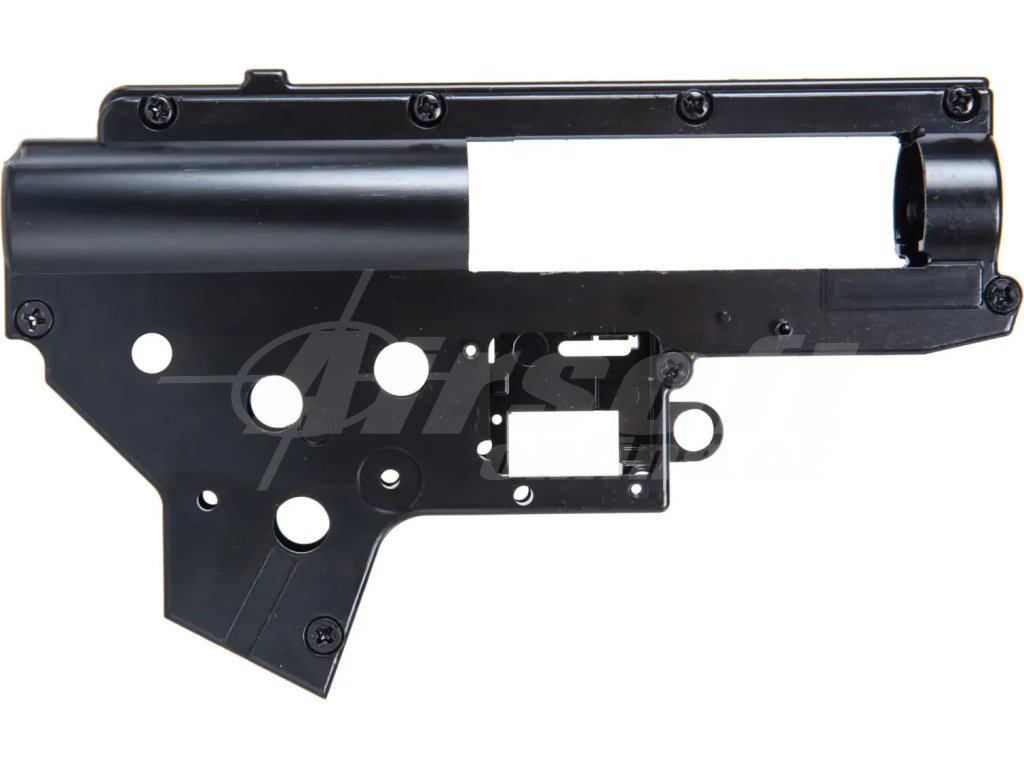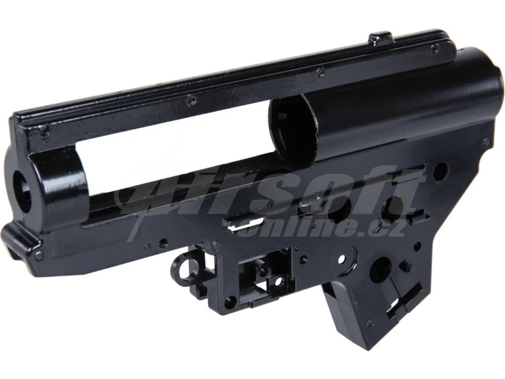 Usazení mechaboxu je upraveno pro použití s 9mm ložisky. Mechabox je opatřen systémem rychlé výměny pružiny a je určený pro repliky s mechaboxem ve standardu Tokyo Marui nebo repliky s mechaboxem V2.