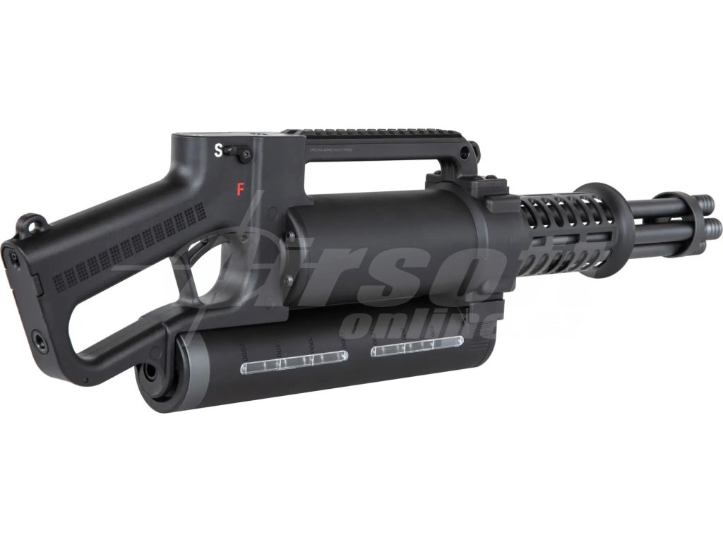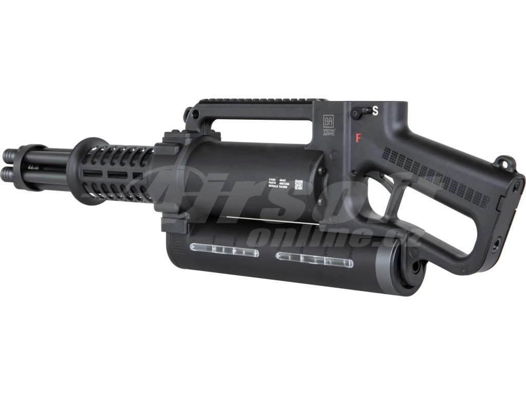 Inspirovaná legendárním Gatling Gunem, jehož první verze spatřila světlo světa už v roce 1861 díky Richardu J. Gatlingovi, tato replika přináší moderní pojetí ikonické zbraně. Skutečné moderní rotační kulomety, jako například M61 Vulcan, se staly synonymem devastující palebné síly a technologické pokročilosti. Specna Arms zde přináší tuto zbraňovou legendu do světa airsoftu v přístupné a hravé formě, která však neztrácí nic na účinnosti.