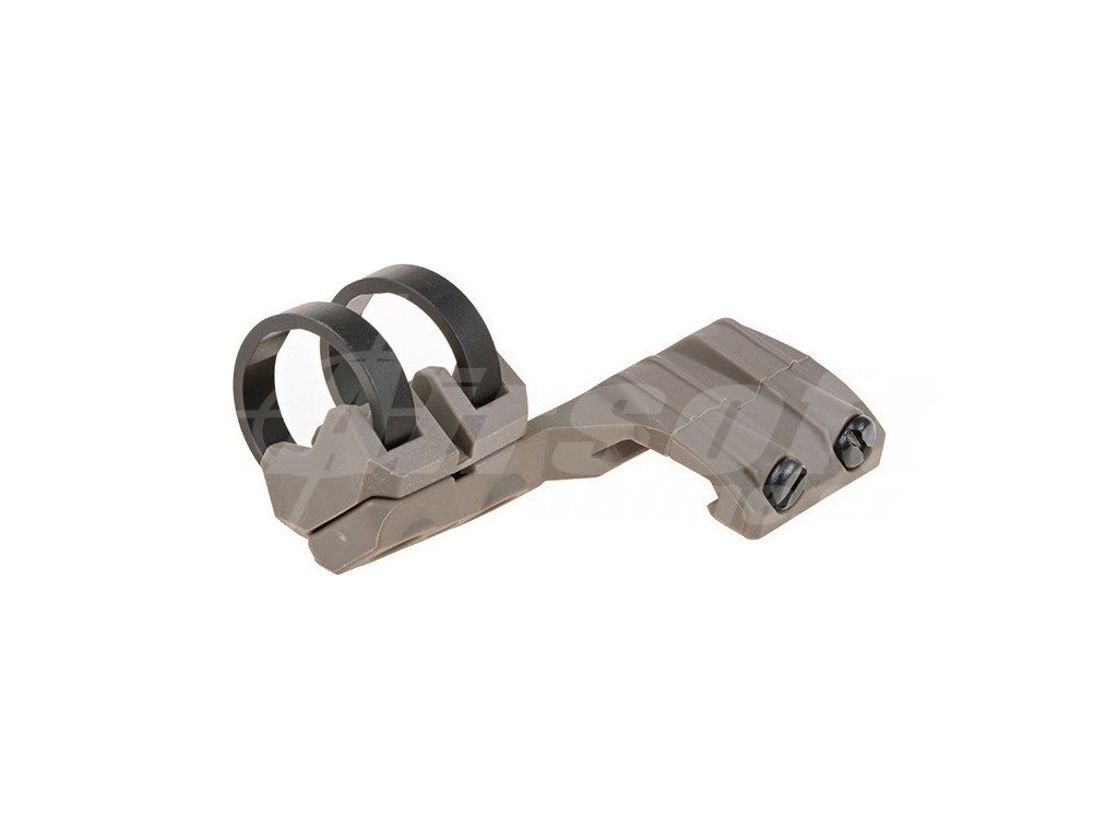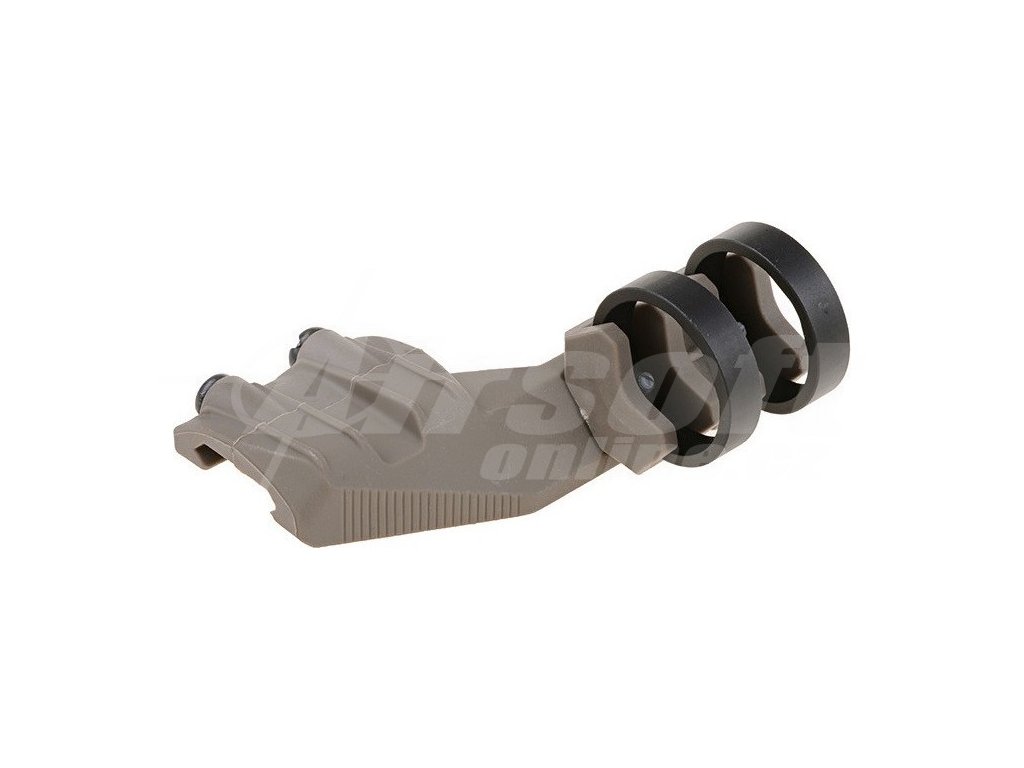 Univerzální držák na taktickou svítilnu DE1 v barvě Dark Earth představuje ideální řešení pro upevnění taktického osvětlení na vaši airsoftovou zbraň. Tento montážní kroužek je vyroben z vysoce kvalitního plastu a kovu, což zajišťuje optimální kombinaci pevnosti a nízké hmotnosti pro vaši airsoft repliku. Díky speciálním nastavitelným kroužkům je průměr regulovatelný v rozmezí 20-30mm, což umožňuje instalaci většiny typů taktických svítilen na trhu.