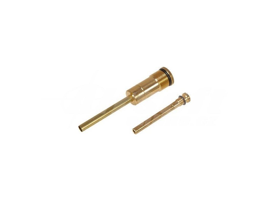 Sada dvou ventilů vyrobených z kovu: sací ventil a dávkovací ventil pro zásobníky MC-80 určené pro repliky plynových brokovnic.