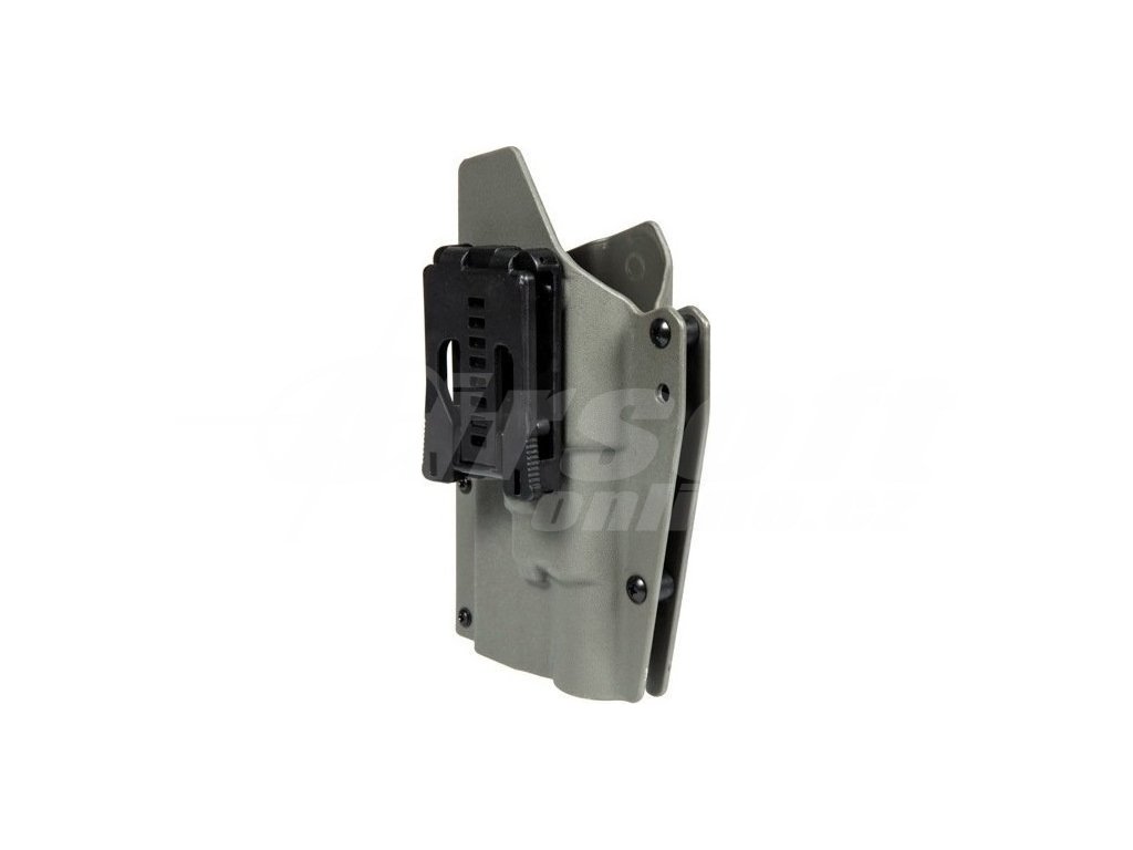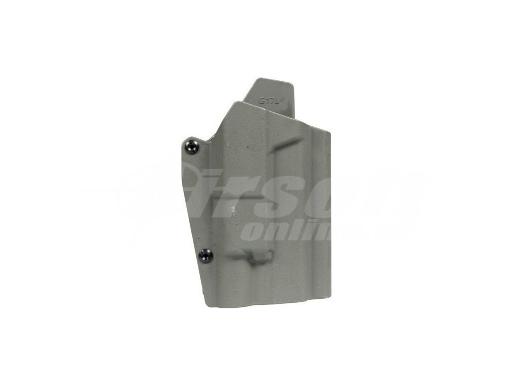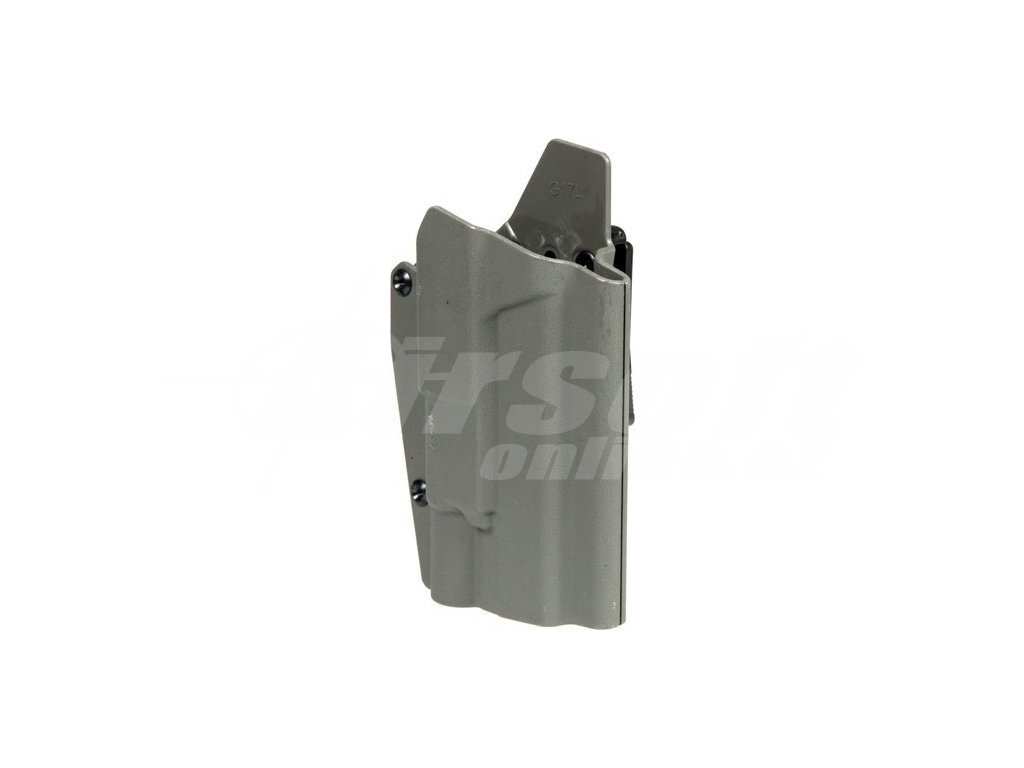 Vyrobeno z odolného plastu od FMA, taktické pouzdro určené pro montáž na taktické opasky o maximální šířce 50 mm. Pouzdro je kompatibilní s replikami pistolí Glock 17L, včetně těch s taktickým osvětlením.