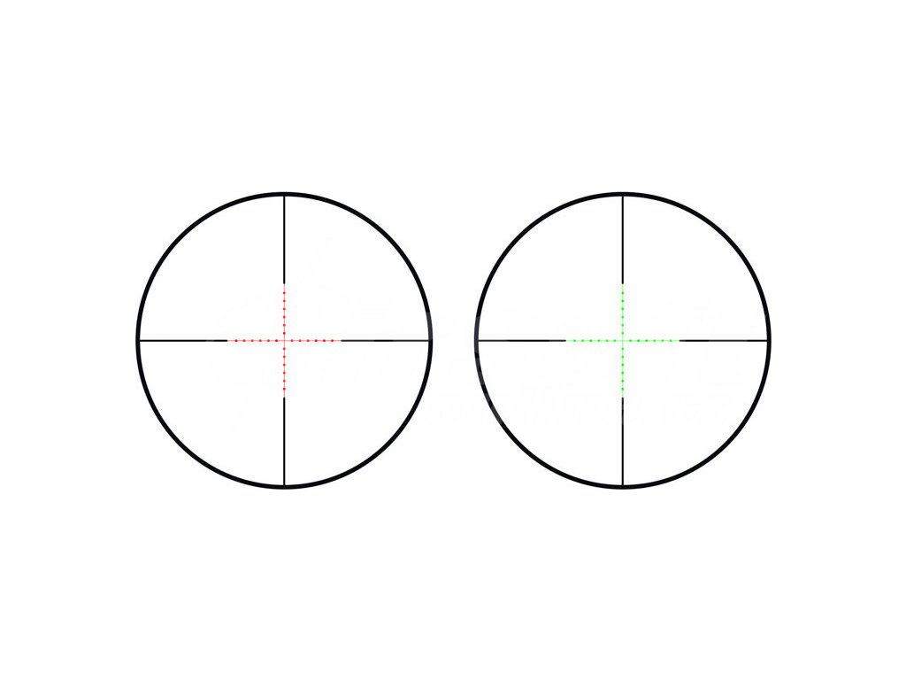 - Červené a zelené podsvícení záměrného kříže