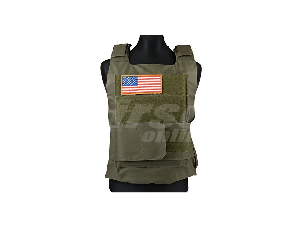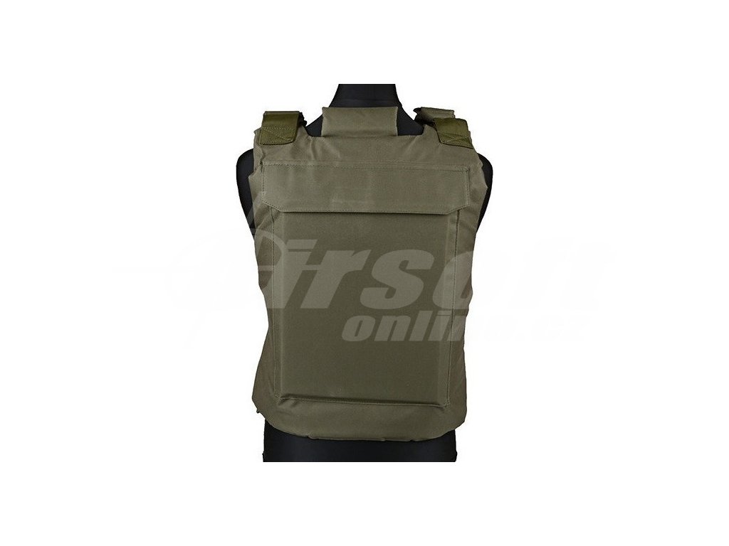 Personal Body Armor je taktická vesta od firmy GFC a je ideální volbou pro herní plány v uzavřených budovách. Vesta je vpředu i vzadu vyztužena replikami balistických vložek, které skvěle ochrání uživatele i na krátkou vzdálenost. Velikost se dá plně regulovat pásem na suchý zip. Na přední straně se nachází panel se suchým zipem, který slouží pro uchycení různých nášivek. Vestu lze snadno kombinovat s dalšími typy výzbroje např. bandalírem.