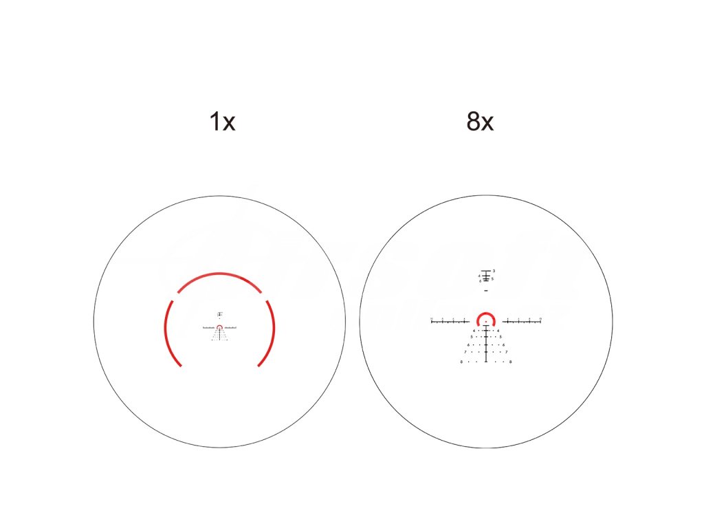 - Variabilní zoom 1-8x pro univerzální použití od CQB po 300+ metrů