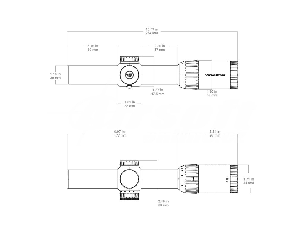 Unikátní záměrný kříž VCO-1 MIL ve verzi RAR (Rapid Aiming Reticle) s výrazným prstencem umožňuje bleskové zaměření při dynamickém CQB airsoftu, přičemž prstenec mizí při zvětšení nad 6x a nebrání tak přesné střelbě na delší vzdálenosti. Technologie FFP (první fokální rovina) zajišťuje, že záměrný kříž mění velikost se zvětšením, což umožňuje přesné měření vzdáleností na jakémkoliv zoomu. Skutečné 1x zvětšení s širokým zorným polem 20° je ideální pro střelbu oběma očima při taktických airsoftových misích. Robustní tubus 30 mm z leteckého hliníku 6061-T6 s certifikací IPX7, plněním dusíkem a odolností 1000 G zaručuje maximální spolehlivost i v nejnáročnějších podmínkách. Nízko-profilové kryté věžičky s jemným nastavením 1/10 MIL a rozsahem přes 35 MIL poskytují precizní korekce pro airsoftové marksmany.