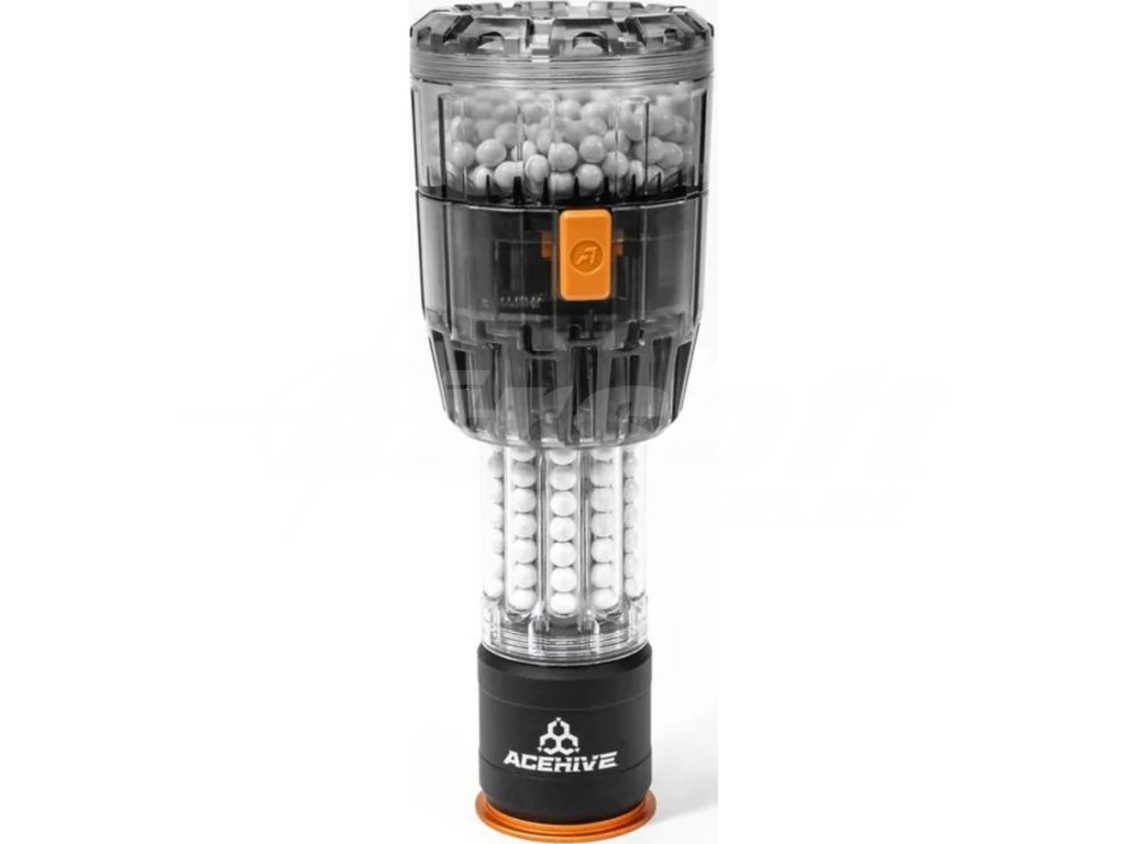 Průhledné provedení ládovačky umožňuje okamžitě zjistit, zde je v ní dostatek střeliva pro nabíjení. Udržujte si tak přehled a připravte se na každou bojovou situaci s jistotou. Spawnerem lze granát AceHive plnit snadno i v plném bojovém nasazení!