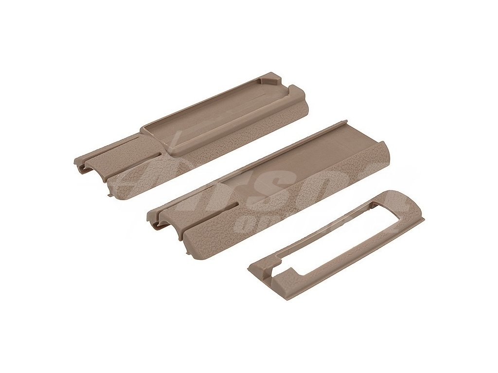 Vylepšete úchop a ochranu své airsoftové zbraně s těmito praktickými krytkami na RIS lištu s protiskluzovou texturou v pískové barvě! Zajistěte si pevnější držení, ochranu kolejnic a možnost instalace gelových výhybek. Objednejte si je nyní na www.airsoft-online.cz a využijte rychlé dodání do 24 hodin!