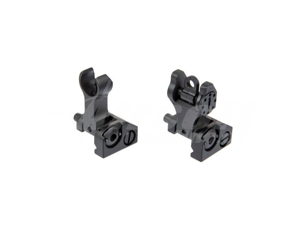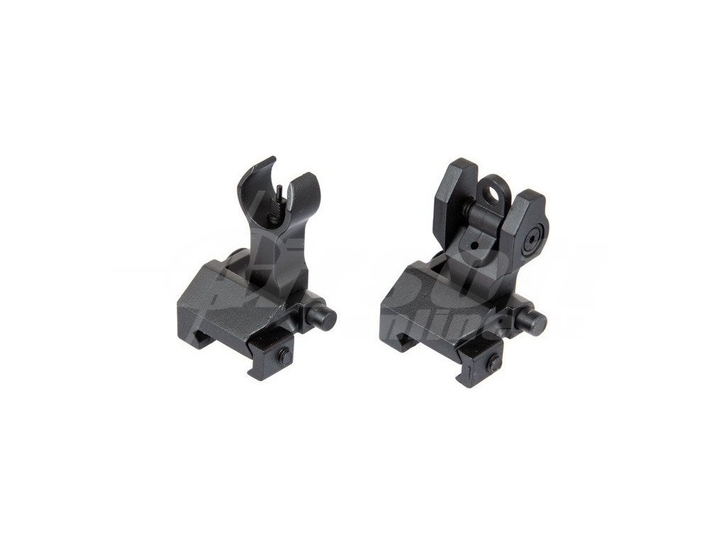Sada skládacích zaměřovacích přístrojů od prémiové značky Specna Arms je kvalitním airsoftovým příslušenstvím vyrobeným z odolného kovu. Tato kovová mířidla jsou určena pro upevnění na standardní 22mm RIS lištu a nabízejí plnou nastavitelnost pro precizní zaměření. Přední muška má regulaci nahoru a dolů, zatímco zadní štěrbina je nastavitelná do stran, což umožňuje přesné doladění zacílení.