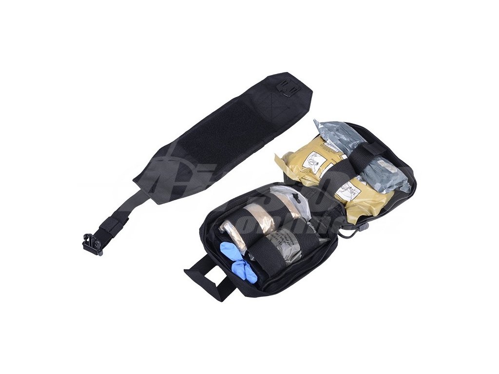 Praktická taktická lékárnička Rip Away, která je kompatibilní s Molle. Lékárnička je vybavená děma zipy, díky čemuž je možné uplně otevřít kapsu získat tím okamžitý přístup k veškerému vybavení. Uvnitř se nachází dvě kapsy, které pevně drží na svém místě pomocí gumových pásků. Uvnitř se dále nachází otvor pro odtok vody,