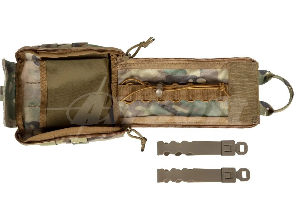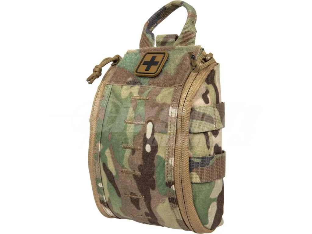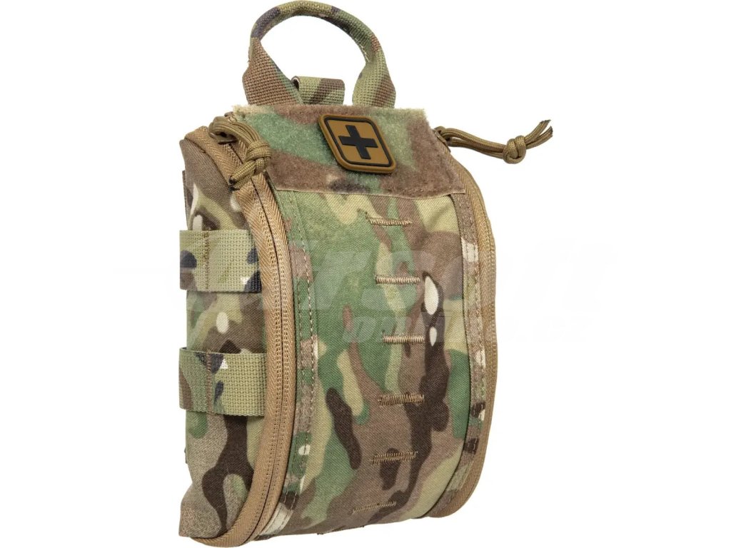 Lékárnička je dostupná v maskovacím vzoru MC, což ji činí ideální pro airsoftové hráče i profesionály. Její kompaktní rozměry 19x6 cm a hmotnost 143 g zajišťují snadné přenášení.