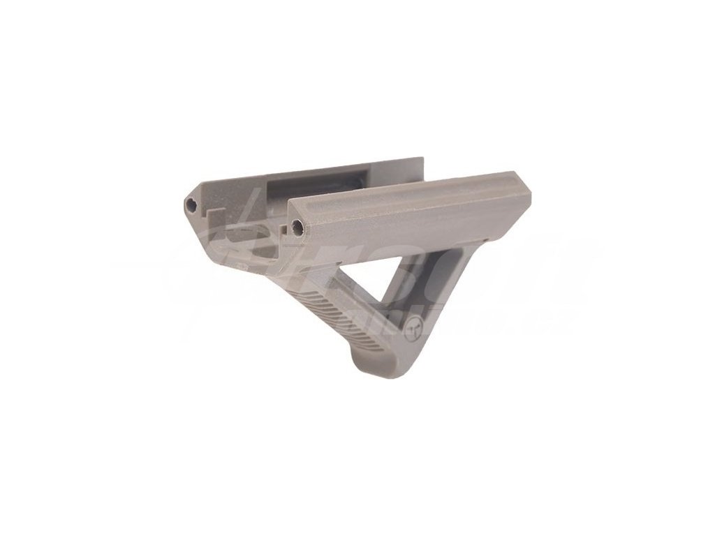Prvek se umísťuje na spodní část předpažbí místo jednoho z modulů, což umožňuje snadnou instalaci a ergonomické držení. Úhlový design poskytuje přirozenější úchop a lepší kontrolu nad airsoftovou replikou. S hmotností 175 gramů nepřidává zbytečnou váhu. Pískový TAN perfektně ladí s pouštní kamufláží. Ideální doplněk airsoftové výstroje pro majitele replik Amoeba.