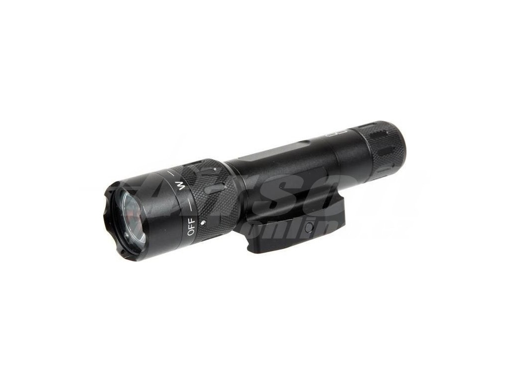 Svítilna je vyrobena z odolné slitiny, která zajišťuje dlouhou životnost i v náročných podmínkách. Nabízí několik režimů ovládání – okamžité rozsvícení při stlačení, stálý svit aktivovaný dvojstiskem, slabý přísvit při jemném stlačení zadního spínače, stroboskopický režim pro dezorientaci protivníků a IR režim pro použití s nočním viděním. IR diodu lze zapnout otočením spínače pod hlavou svítilny. Svítilna je vybavena zadním spínačem a přiloženým tlakovým spínačem, které lze ovládat současně pro maximální flexibilitu. Montáž na 22mm RIS lištu je rychlá a jednoduchá. Praktický plastový kufřík v balení usnadňuje přepravu a skladování, což oceníte při cestách na airsoft akce.