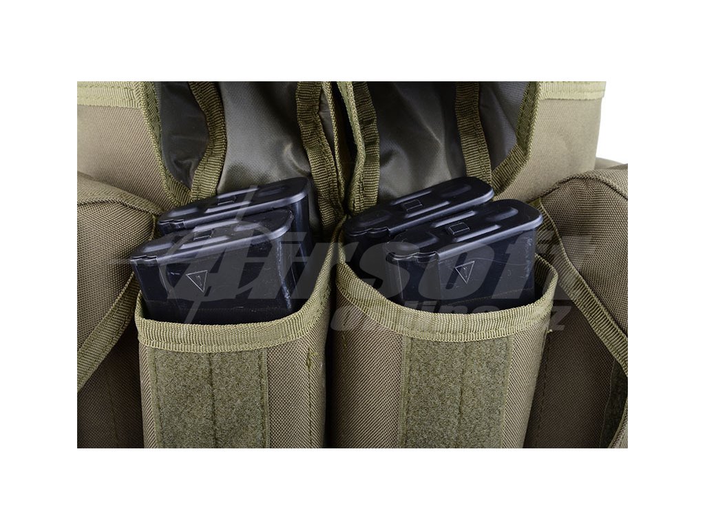 - Kapacita pro zásobníky: Vesta je navržena pro uložení až 8 zásobníků pro AK nebo M4, což vám poskytuje dostatek munice na delší akce.