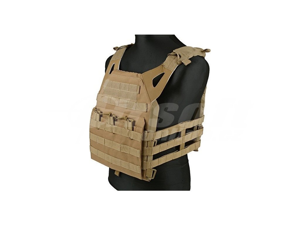 Jump je taktická vesta typu plate carrier, navržená pro náročné uživatele, kteří hledají kombinaci nízké hmotnosti a vysoké odolnosti. Vyrobena z kvalitního nylonu, je tato vesta nejen lehká, ale zároveň velmi odolná proti poškození, což ji činí ideální volbou pro airsoftové hráče, militaristy nebo taktické operace.