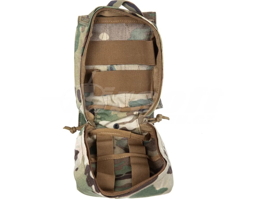 Odolná a lehká lékárnička od společnosti Wosport. Lékárnička je vyrobena z odolného a pevného materiálu Cordura 500D a je opatřena montážním systémem MOLLE, což umožňuje připevnění k dalšímu taktickému vybavení jako jsou vesty, batohy nebo opasky. Lékárnička je uzavíratelná pomocí klopy s plastovou sponou. Uvnitř lékárničky se nachází elastické popruhy, které slouží pro upevnění zdravotnického vybavení. Lékárnička má dvoucestný YKK zip, který je opatřen dodatečnými šňůrkami pro jednodušší použití s rukavicemi.