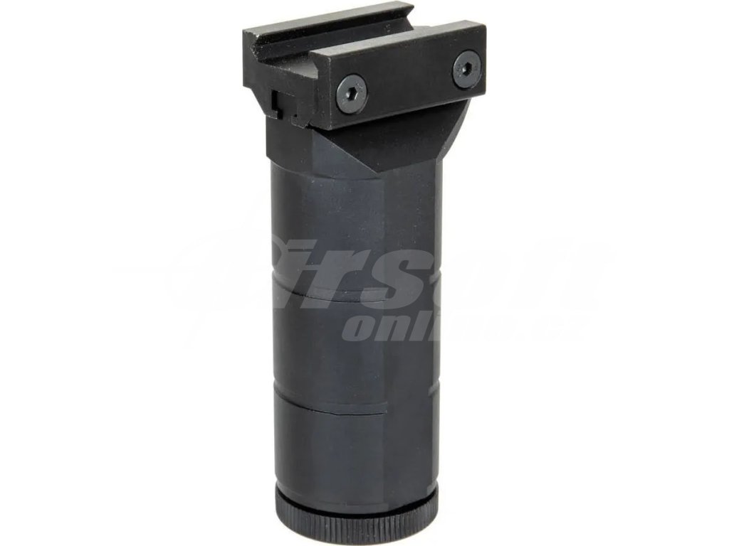 Uvnitř rukojeti se nachází malá úložná přihrádka pro libovolné použití, například pro náhradní baterie nebo menší nástroje. Přístup do přihrádky získáte jednoduchým odšroubováním matice. Rukojeť je vhodná pro všechny airsoftové repliky vybavené RIS lištou 22 mm. Ideální doplněk airsoftové výstroje pro hráče preferující ruský vojenský styl.
